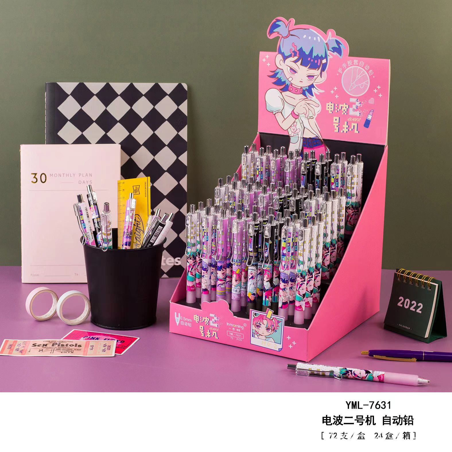 나무 숲 7631 이차 소녀 심장 기계 연필 0.5mm 활동 연필 만화 귀여운 프레스 연필스토어 가기