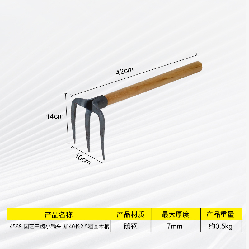 • 4568-원예 3 치아 작은 괭이 플러스 40 길이 2.5 두꺼운 통나무 손잡이