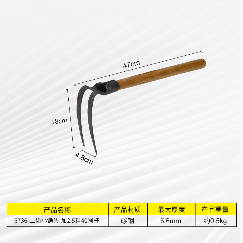 가정용 수제 꽃 괭이 다기능 탄소 강철 꽃 작은 괭이 잡초 삽 토양 제초 이중 목적 단조 2 이빨 갈퀴
