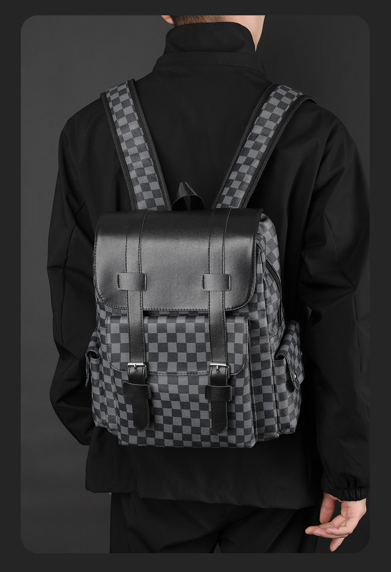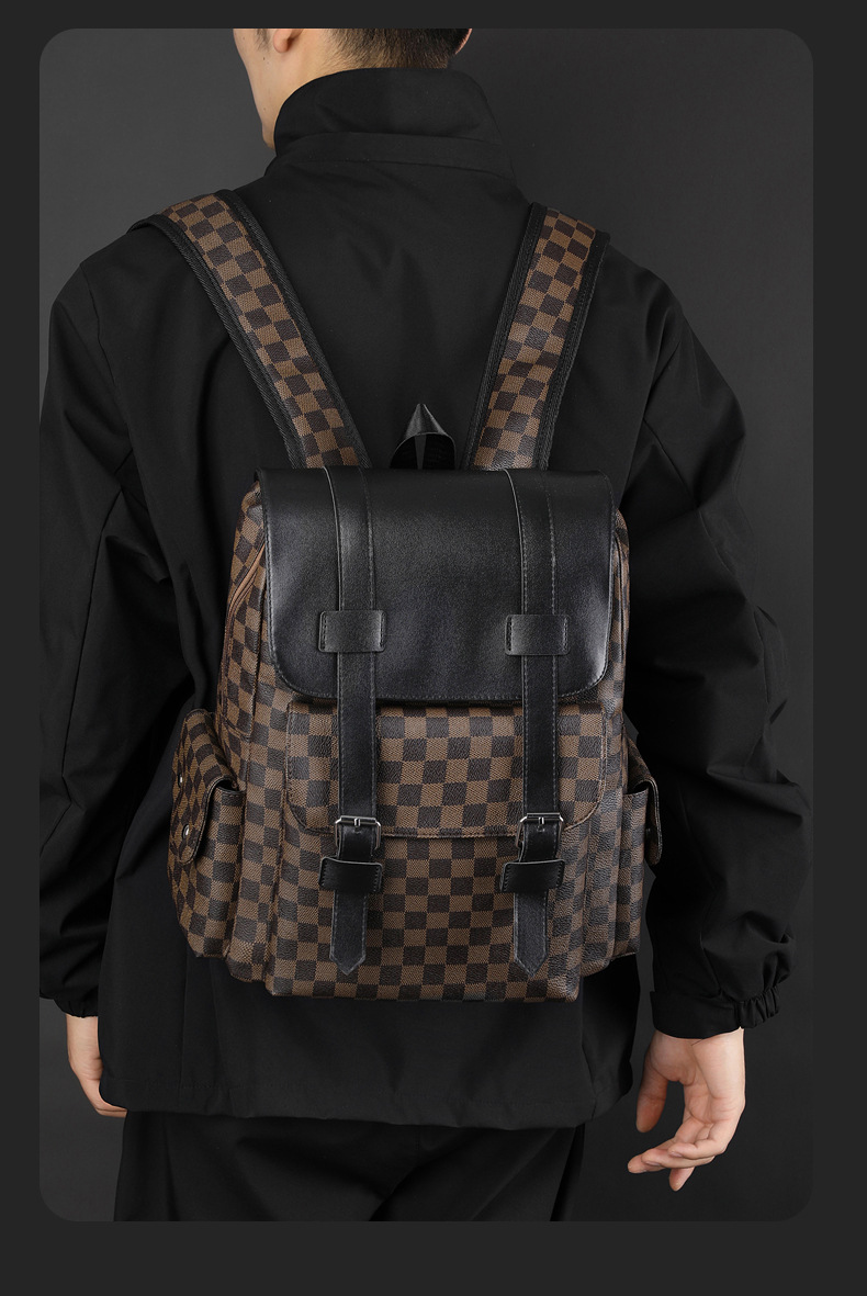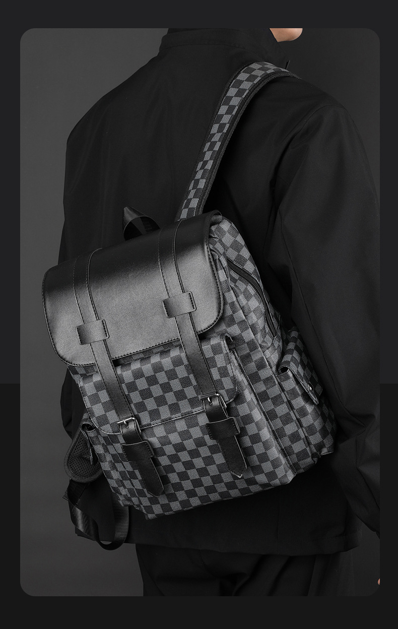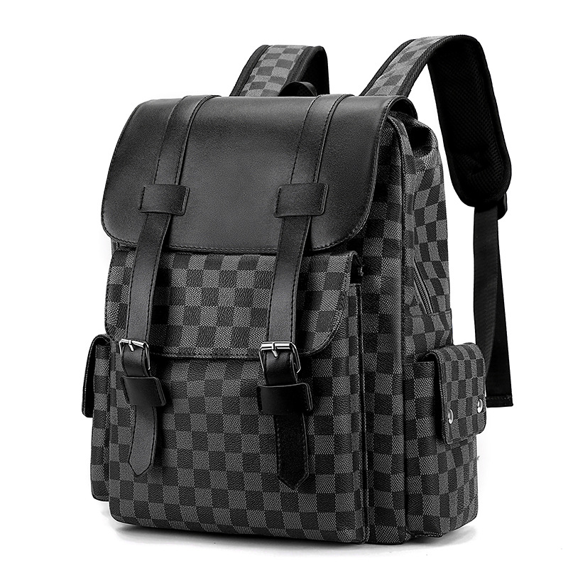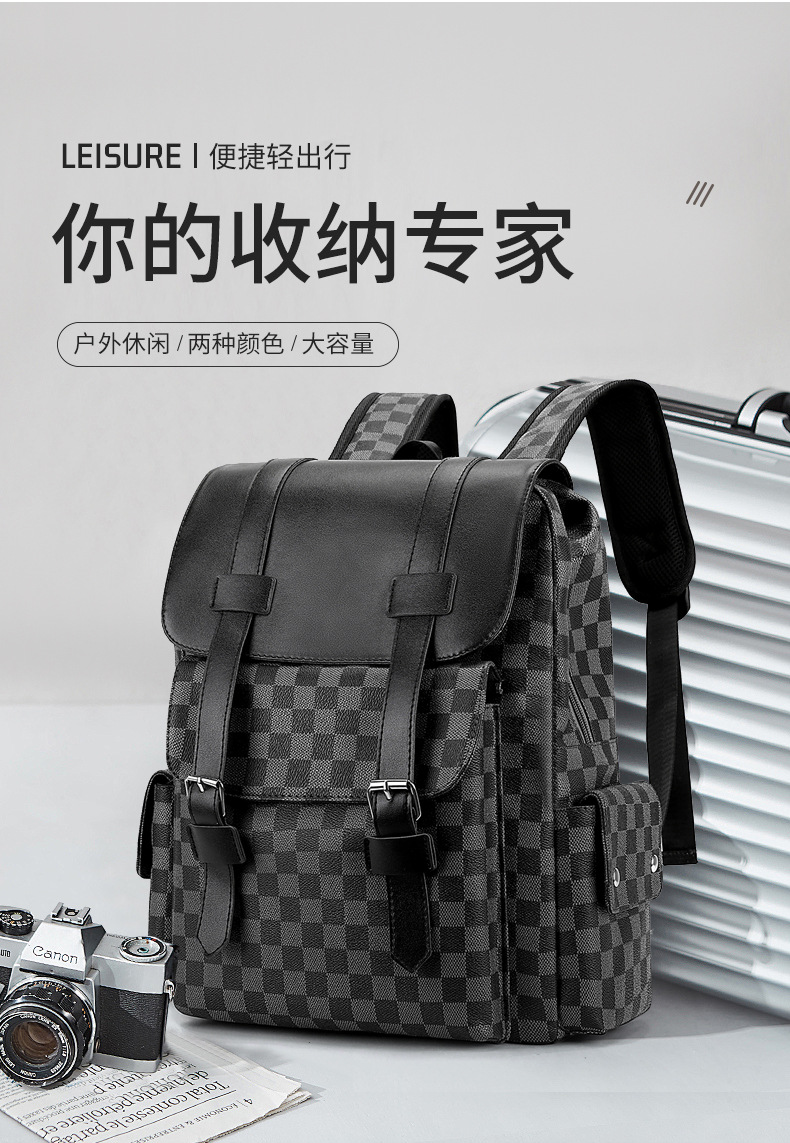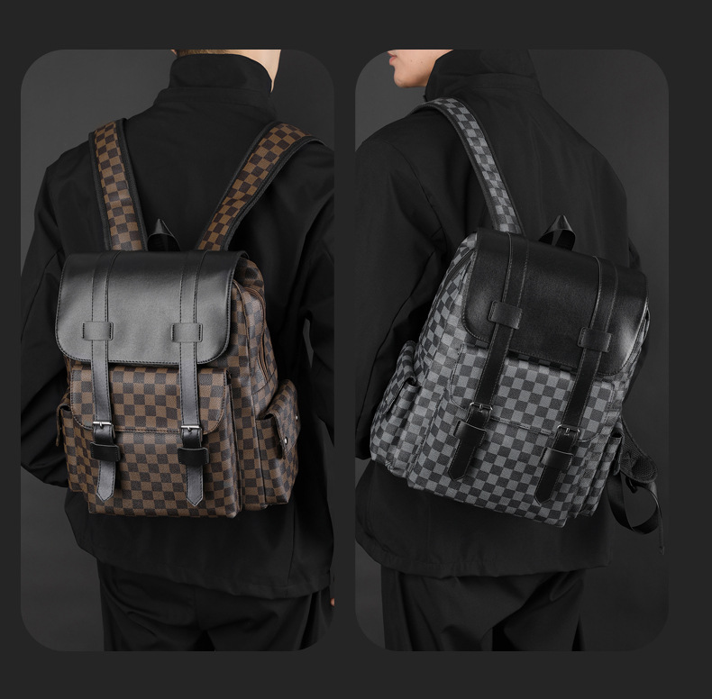 새로운 한국식 배낭 가죽 대용량 남성과 여성의 트렌디 한 격자 무늬 배낭 여행 가방 학생 학교 가방 컴퓨터 가방스토어 가기