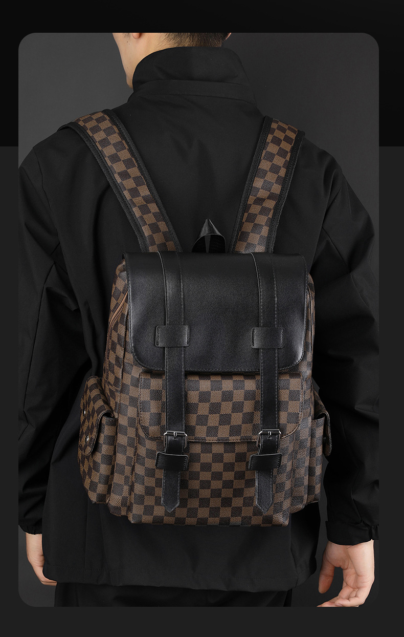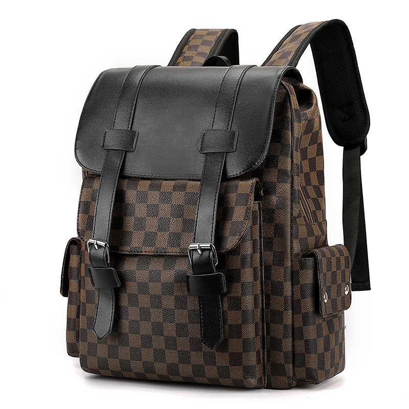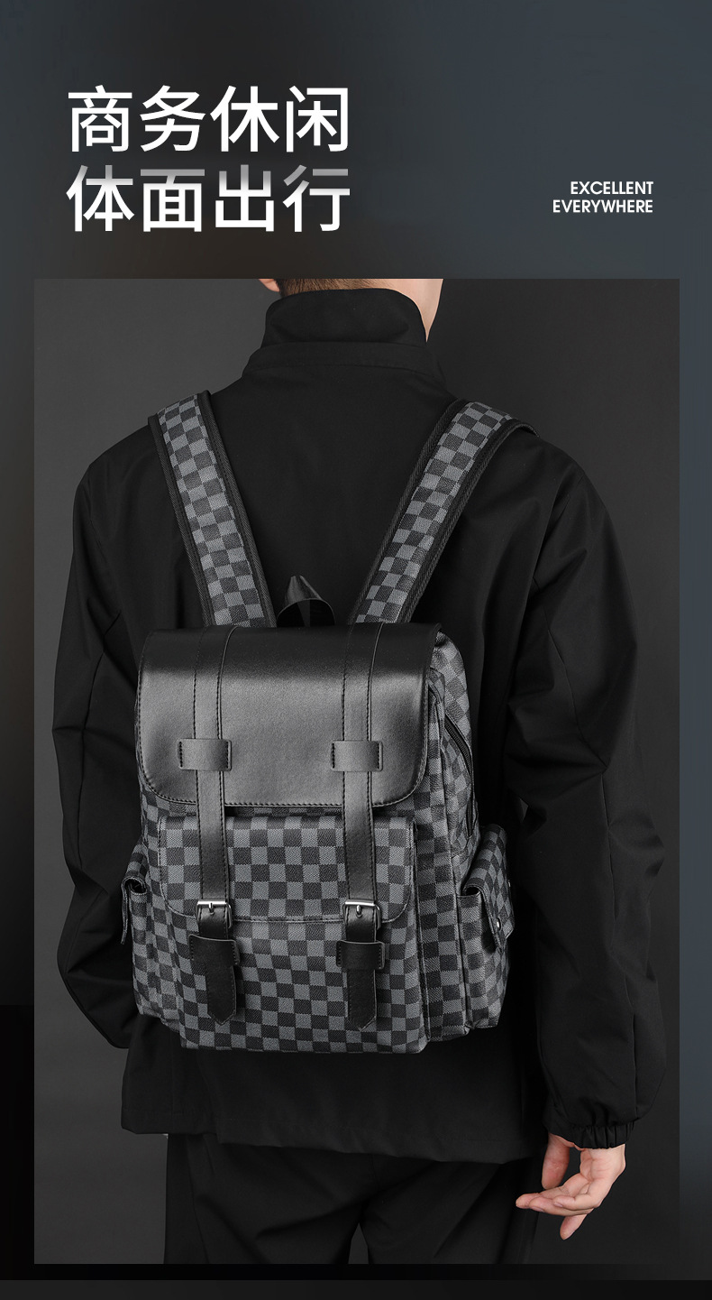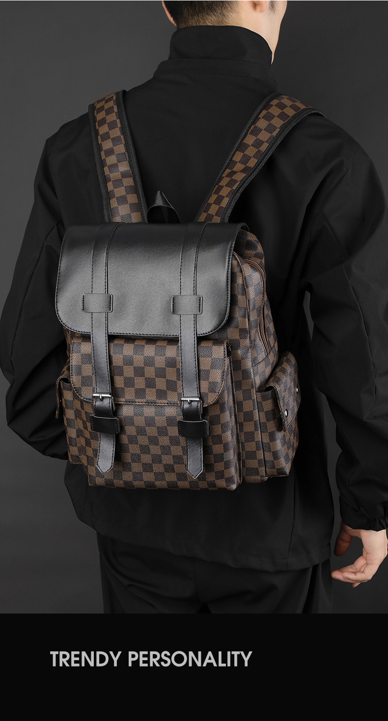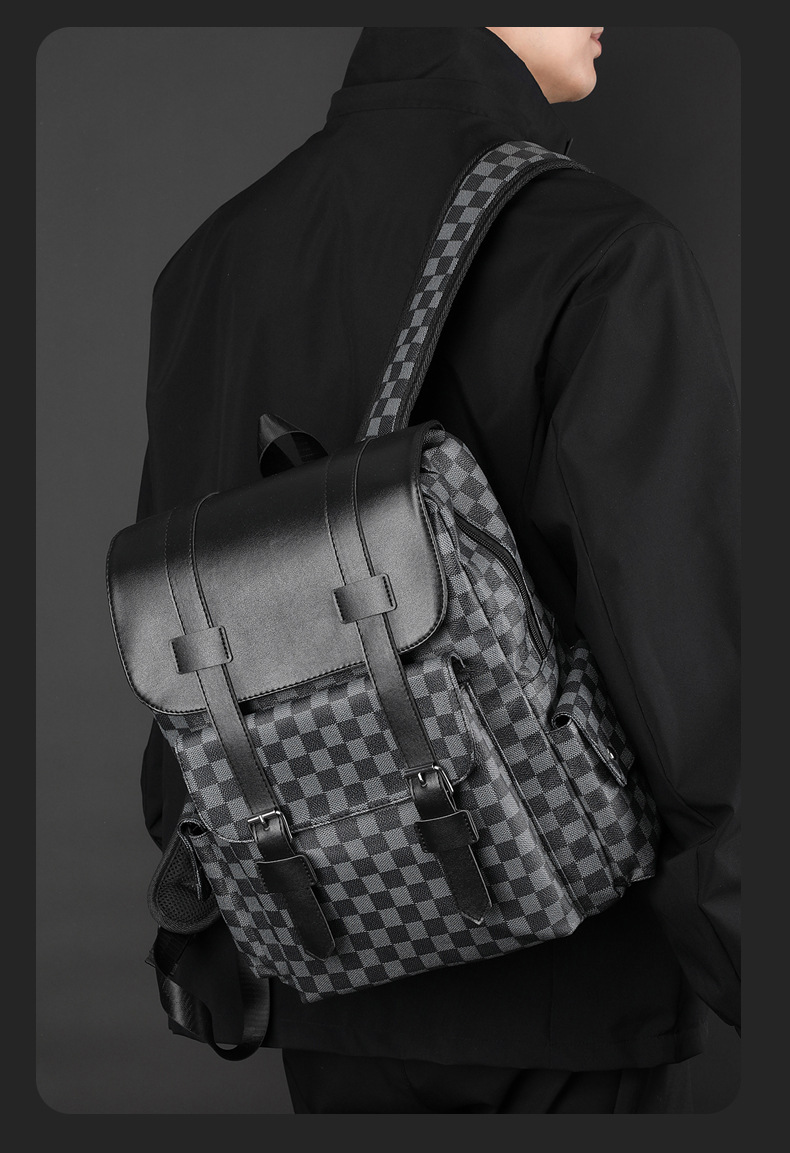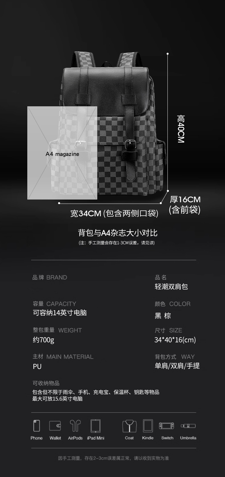 새로운 한국식 배낭 가죽 대용량 남성과 여성의 트렌디 한 격자 무늬 배낭 여행 가방 학생 학교 가방 컴퓨터 가방스토어 가기