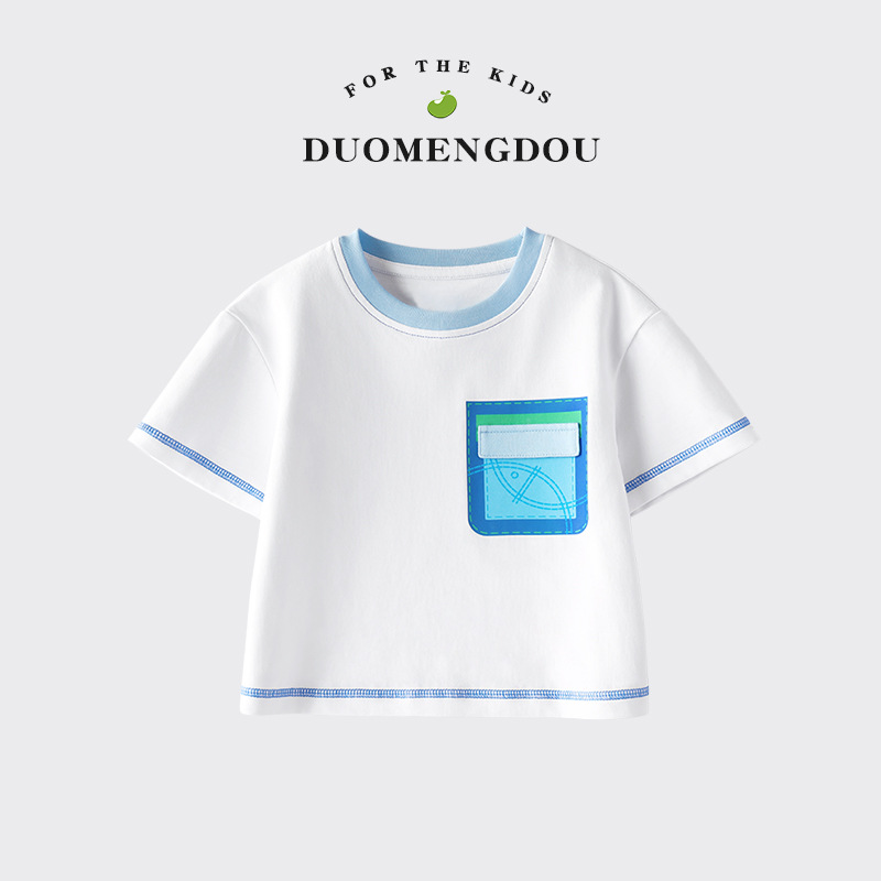 남아용 반팔 티셔츠, 아동용 패치워크 컬러 순면 상의, 아동용 대비 색상, 여름용 다용도 아동복