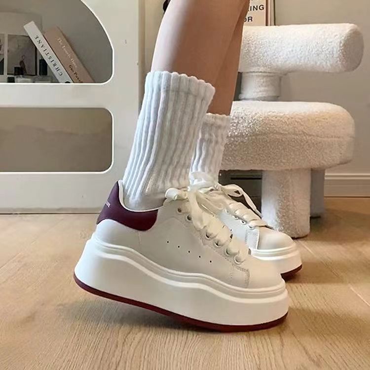 두꺼운 바닥 머핀 흰색 신발 여성 크로스 보드 신발 2024 여름 새로운 그물 빨간색 캠퍼스 디자인 캐주얼 운동화스토어 가기