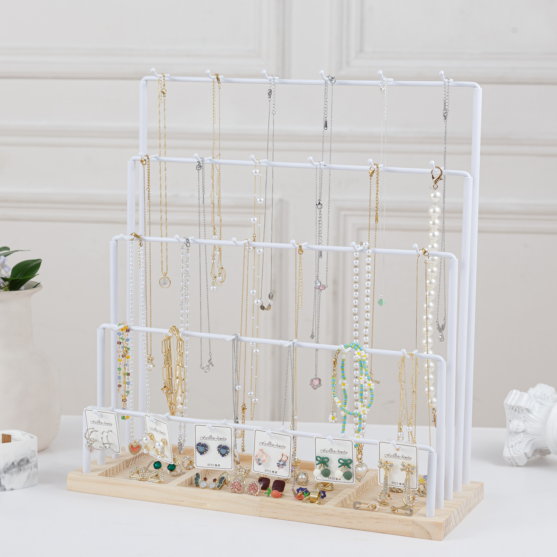 • 나무 베이스가 있는 흰색 5층 파이프 프레임
