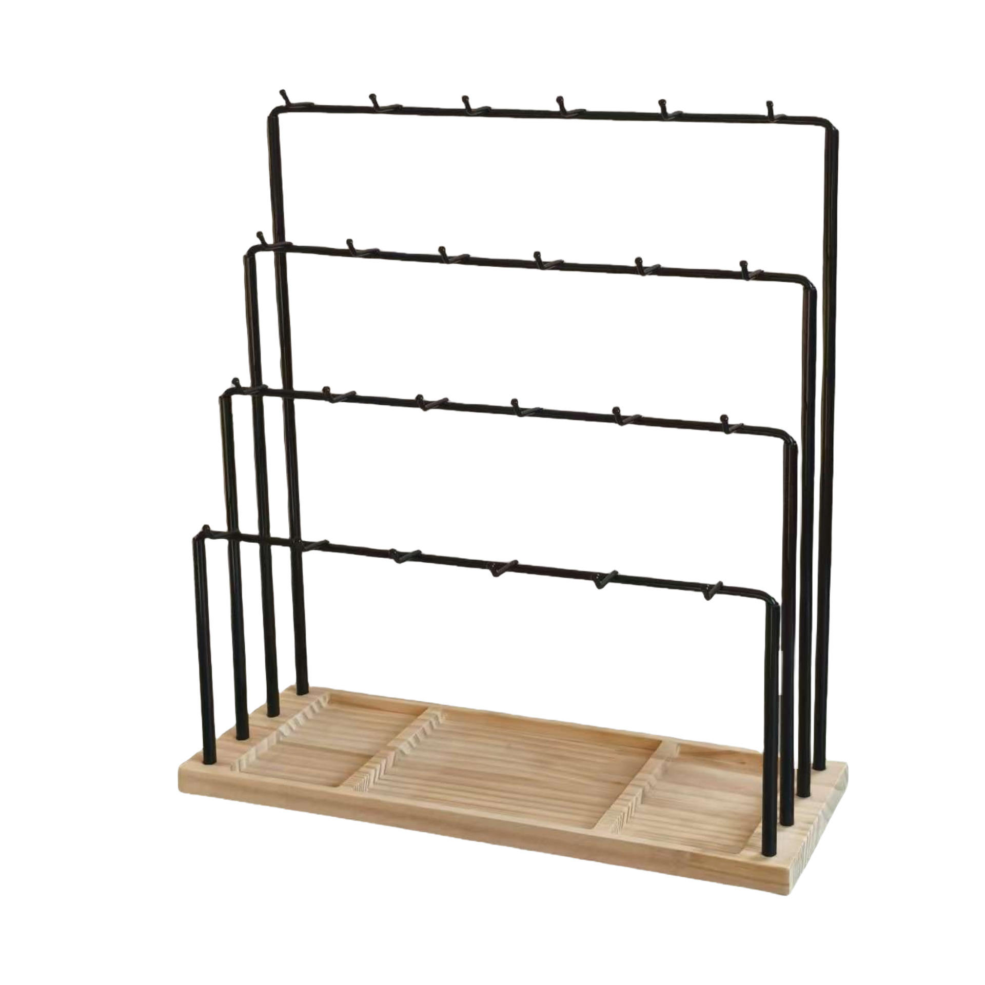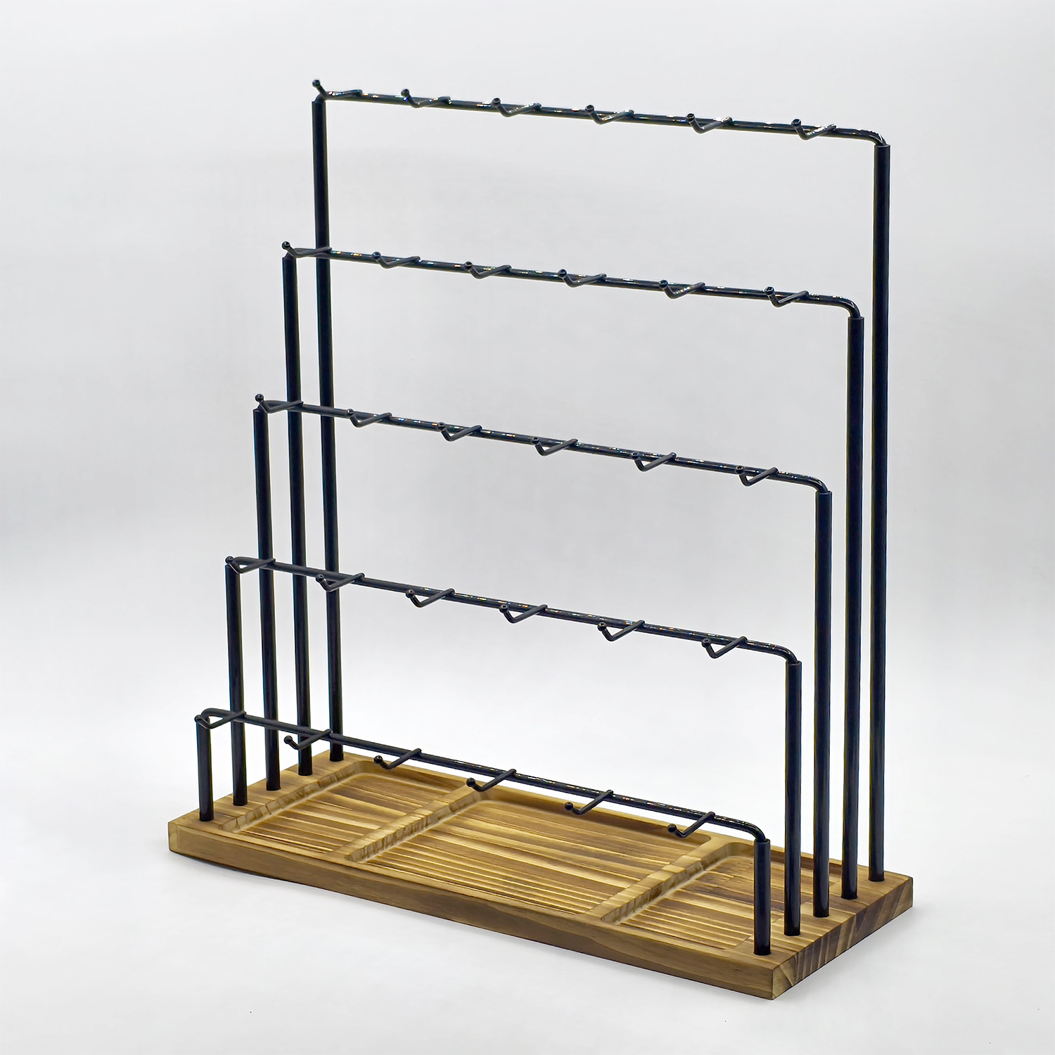 • 나무 베이스가 있는 검정색 4층 파이프 랙