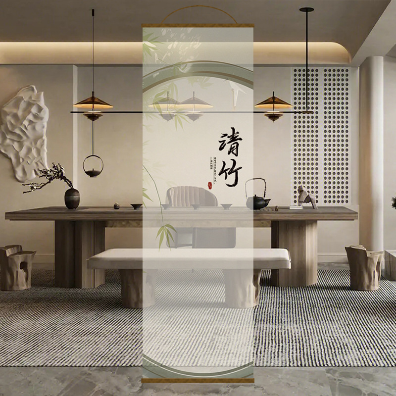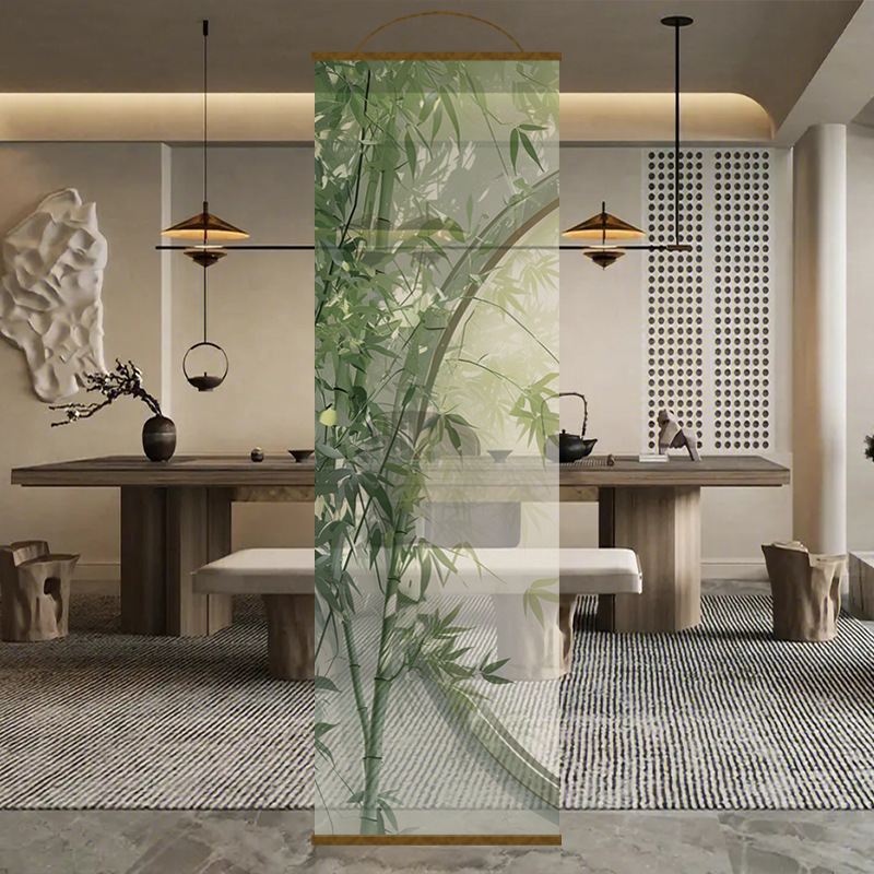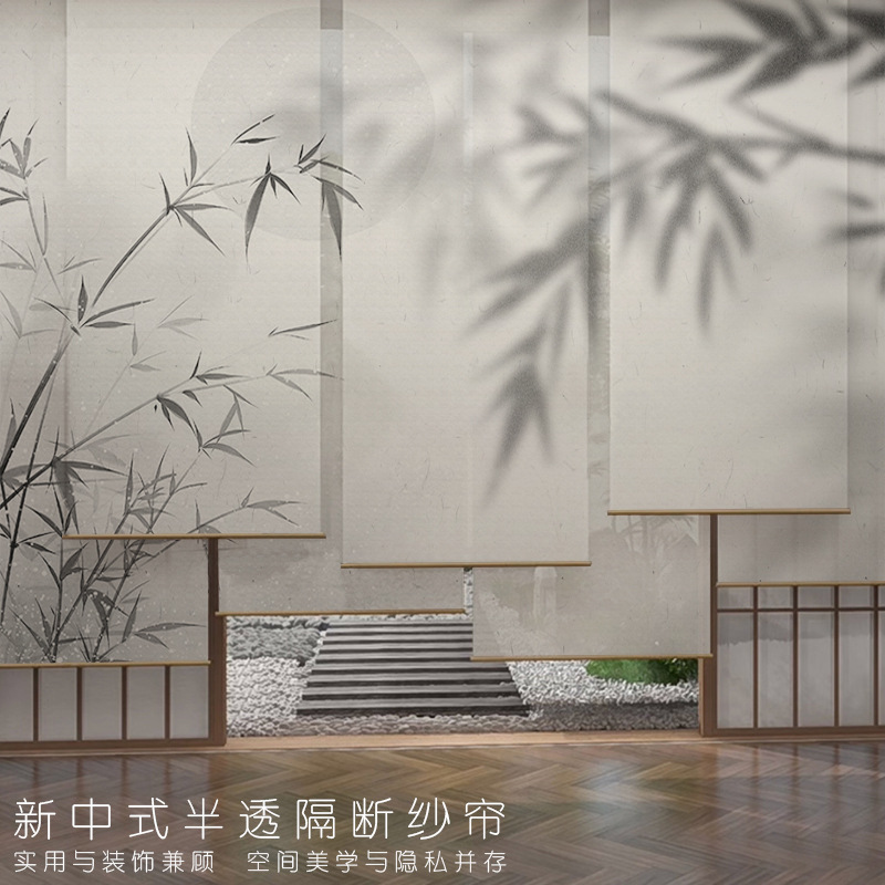 새로운 중국풍 수묵 대나무 그림 고급 투명 스크린, 거름막 롤커튼, 칸막이 커튼, 걸이형 커튼, 창문 커튼, 현관 투광 거름막 커튼