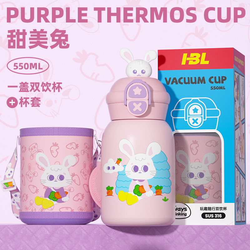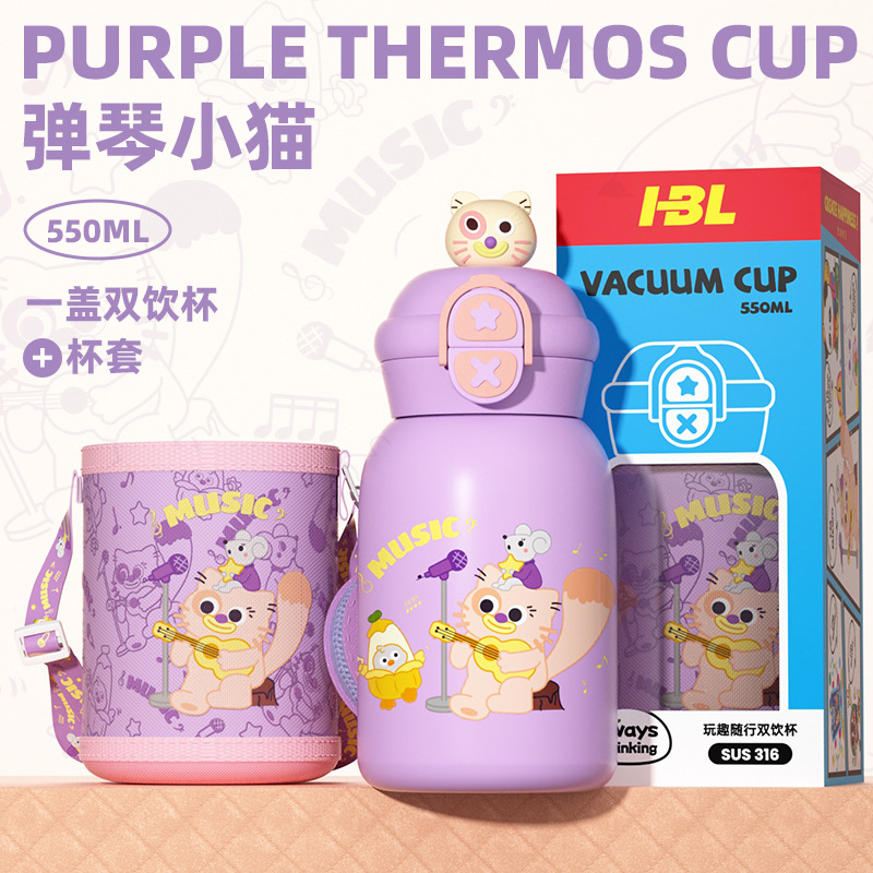 만화 새로운 인형 어린이 보온병 컵 한 뚜껑 더블 음료 스테인레스 스틸 남성과 여성의 물 컵 어린이와 학생 귀여운 컵