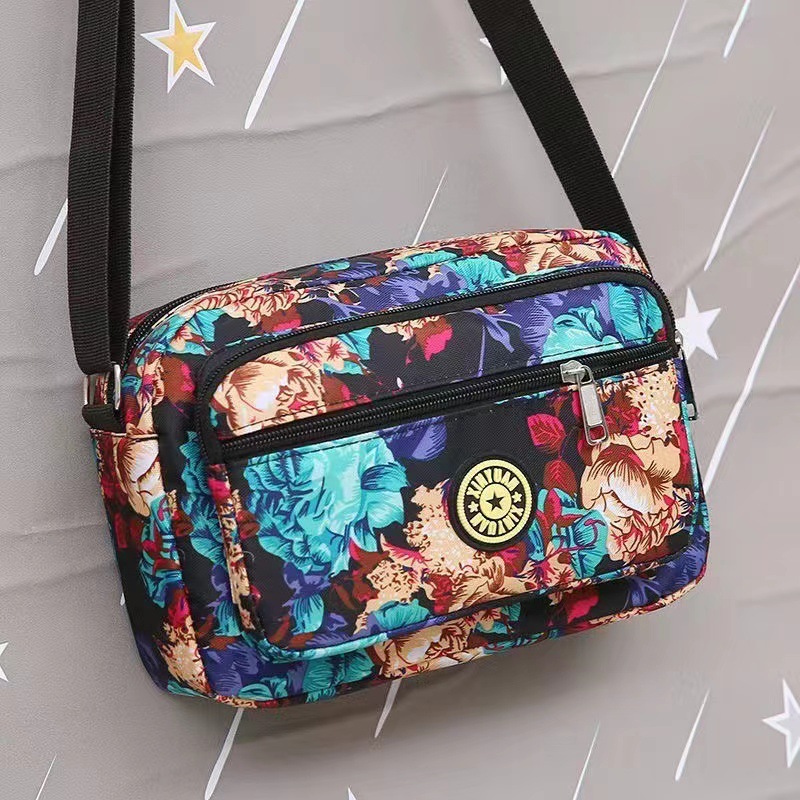 대용량 캔버스 가방 경량 중년 및 노인 어머니의 가방 꽃 천 나일론 옥스포드 천 대형 어깨 가방 크로스 바디 백 여성용 가방