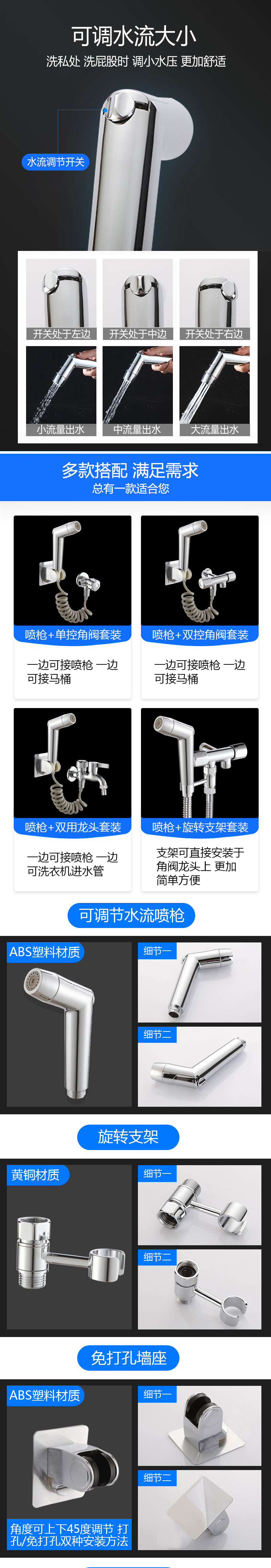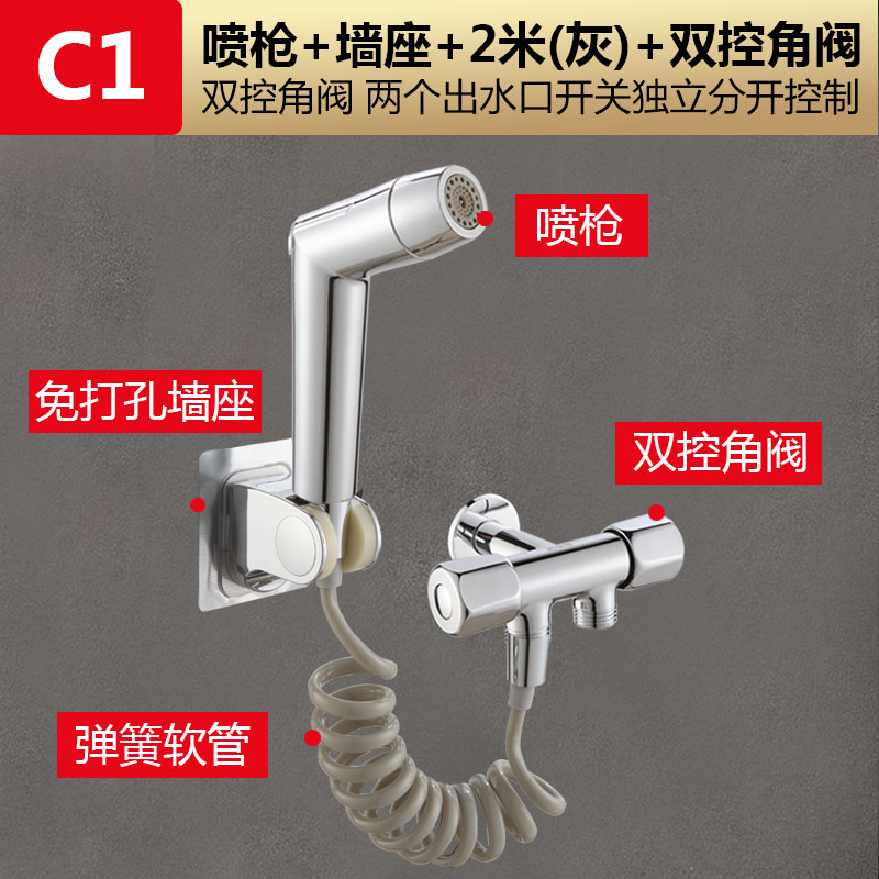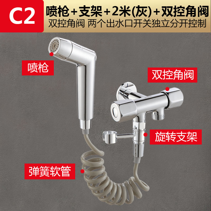 • C5 모델: [이중 제어 앵글 밸브 4종 세트] 스프레이 건 + 2m 샤워 파이프 + 이중 제어 이중 목적 앵글 밸브