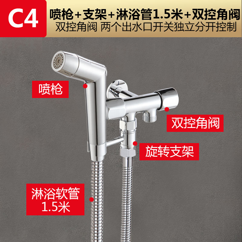 • C4 모델: [이중 제어 앵글 밸브 4종 세트] 스프레이 건 + 1.5m 샤워 파이프 + 이중 제어 이중 목적 앵글