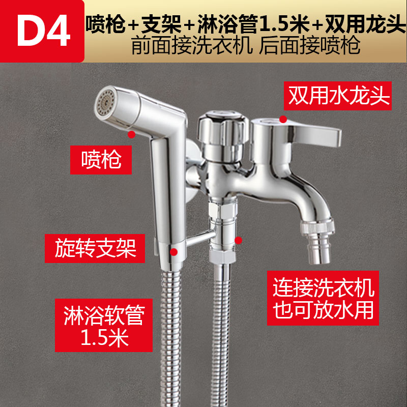 • 모델 D4: [겸용수전 4종세트] 스프레이건 + 1.5m 샤워파이프 + 겸용수전