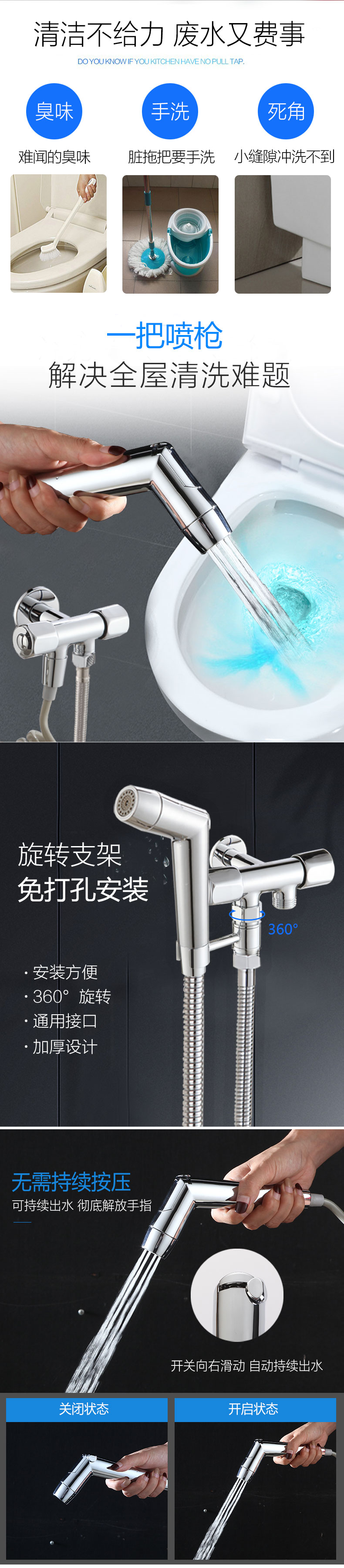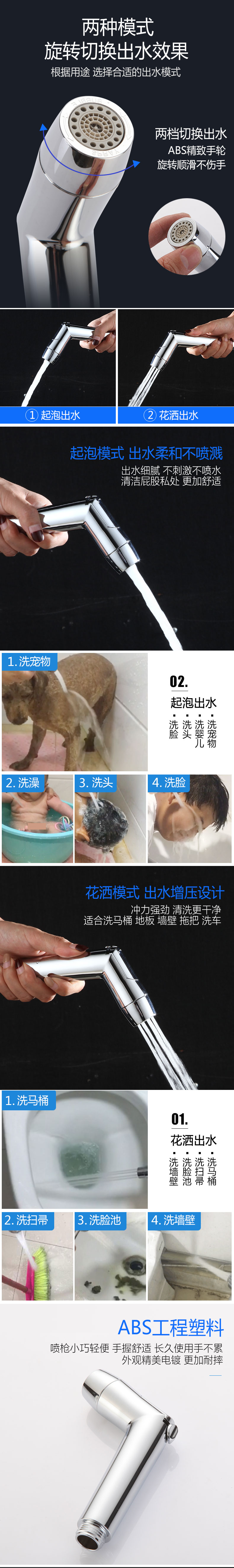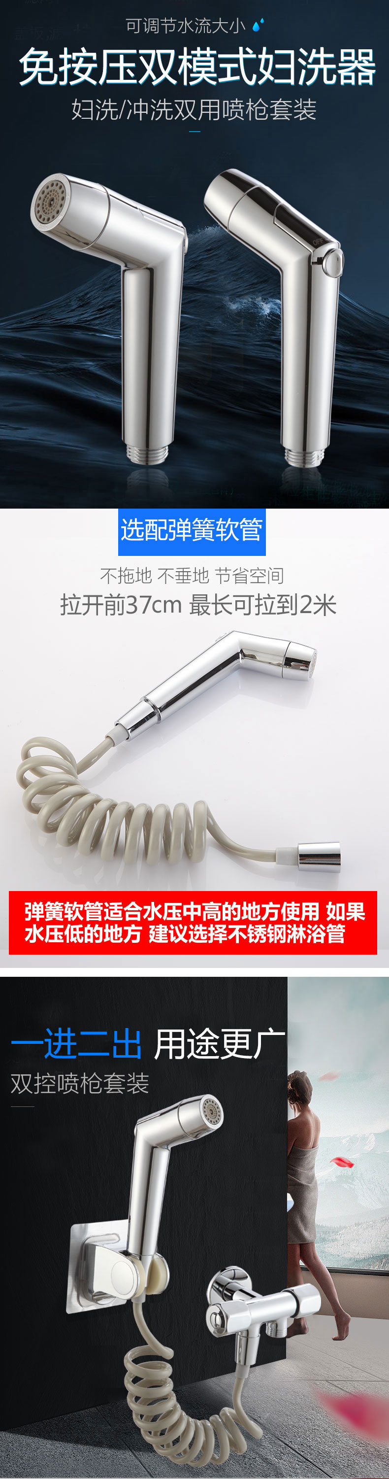 프레스 프리 조절 식 압력 이중 물 출구 화장실 컴패니언 스프레이 건 세트 세탁기 플러싱 부스터 노즐