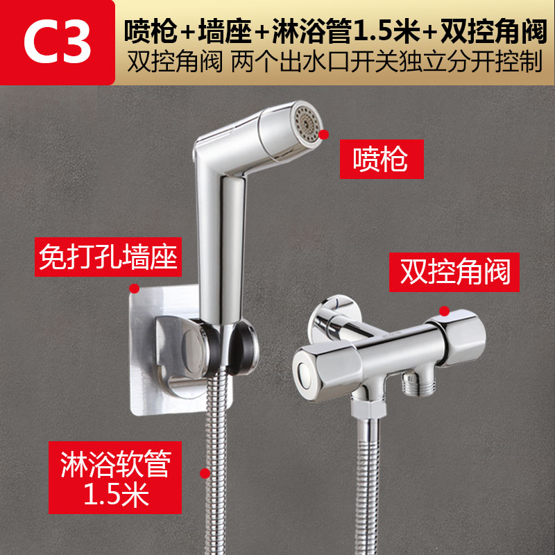 • C3 모델: [이중 제어 앵글 밸브 4종 세트] 스프레이 건 + 1.5m 샤워 파이프 + 이중 제어 이중 목적 앵글
