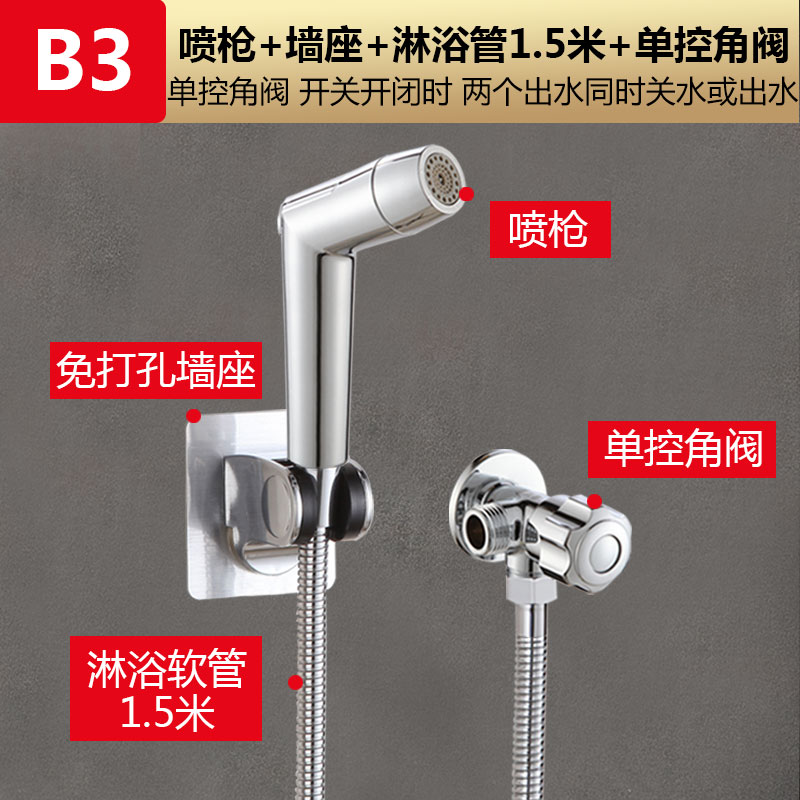• 모델 B3: [단일 제어 앵글 밸브 4개 세트] 스프레이 건 + 1.5m 샤워 파이프 + 단일 제어 이중 목적 앵글
