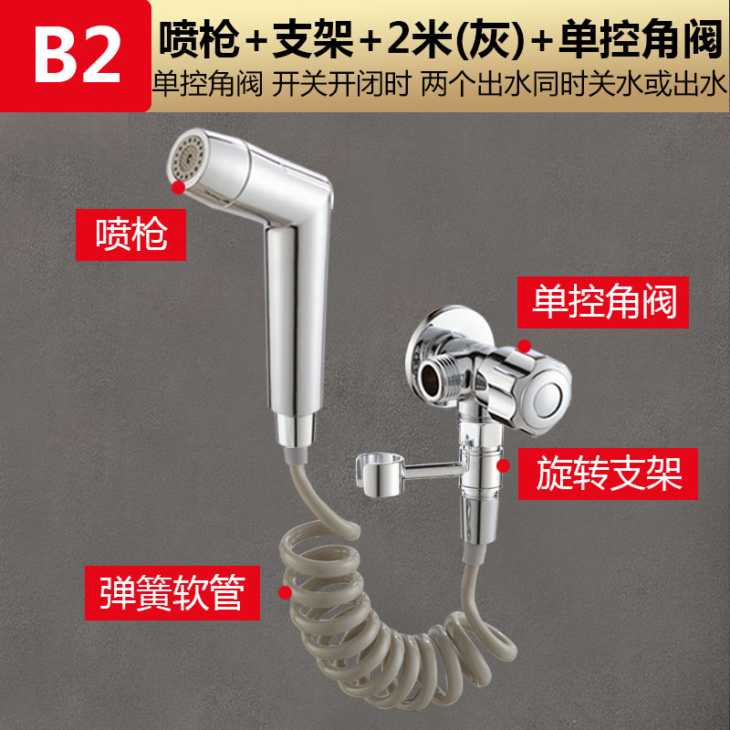 • B2 모델: [단일 제어 앵글 밸브 4개 세트] 스프레이 건 + 2m 텔레스코픽 호스 + 단일 제어 이중 목적 앵글