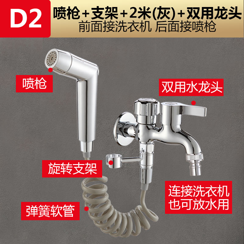 • D2 모델: [이중용 수도꼭지 4종 세트] 스프레이 건 + 2m 텔레스코픽 호스 + 이중 용도 수도꼭지