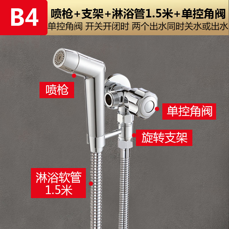• 모델 B4: [단일 제어 앵글 밸브 4개 세트] 스프레이 건 + 1.5m 샤워 파이프 + 단일 제어 이중 목적 앵글