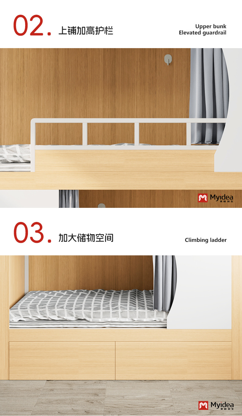• 상단 밀봉 패널과 후면 패널이 있는 이층 침대 사다리 캐비닛 단일 침대