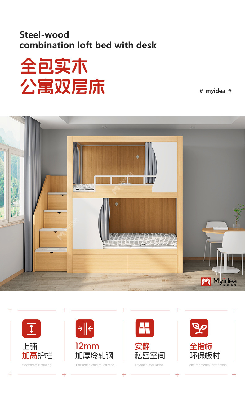 광저우 일체형 우주 캡슐 이층 침대 아파트 대학 기숙사 침대 철제 침대(캐비닛 및 사다리 포함) 높낮이 조절 가능한 이층 침대스토어 가기