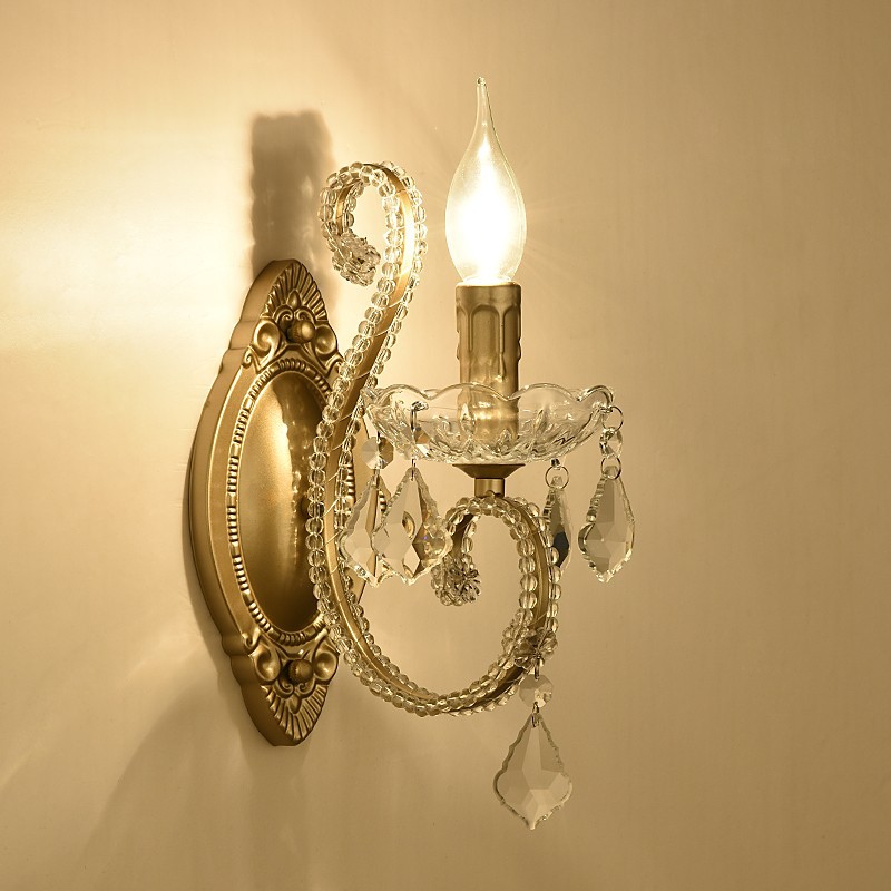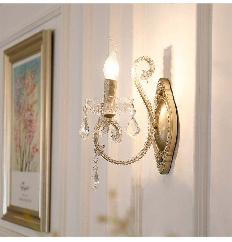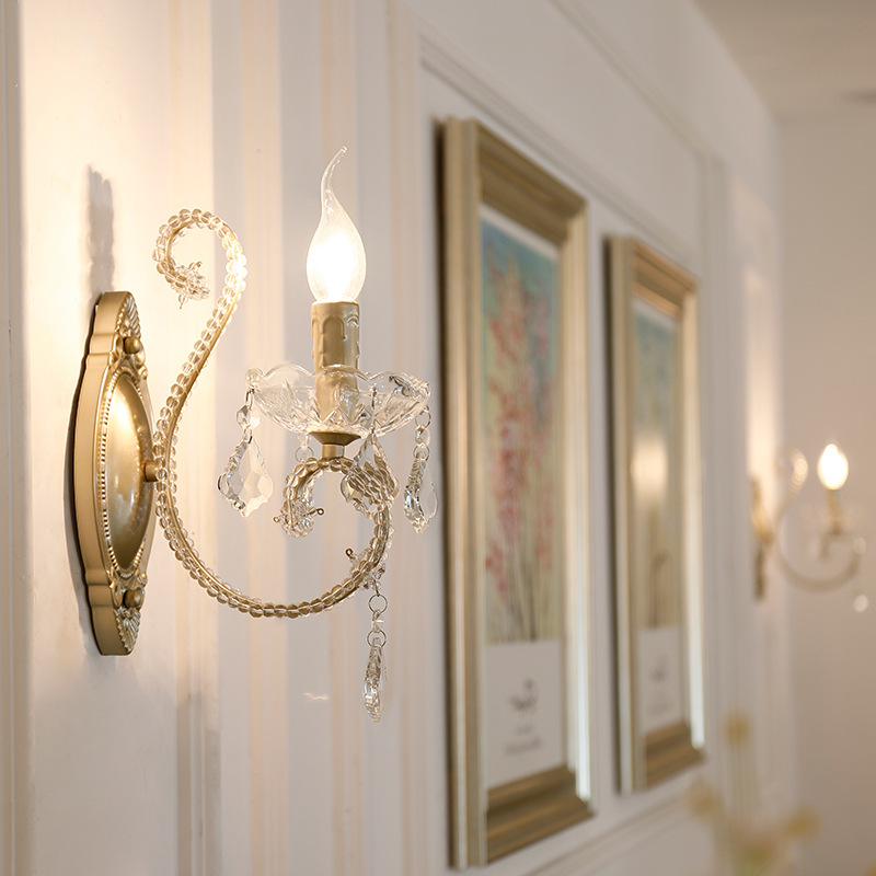 아메리칸 스타일 벽 램프 침대 옆 침실 거실 멀리 램프 계단 발코니 간단한 철 빈티지 크리스탈 벽 램프스토어 가기