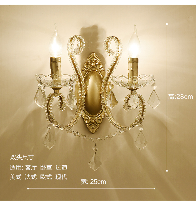 아메리칸 스타일 벽 램프 침대 옆 침실 거실 멀리 램프 계단 발코니 간단한 철 빈티지 크리스탈 벽 램프