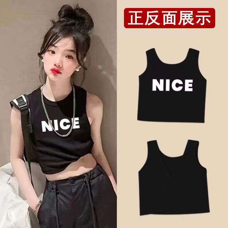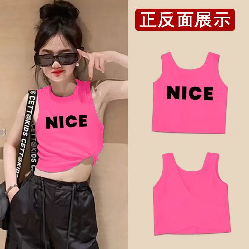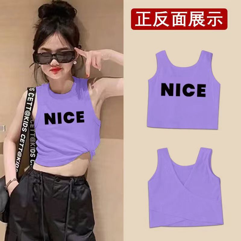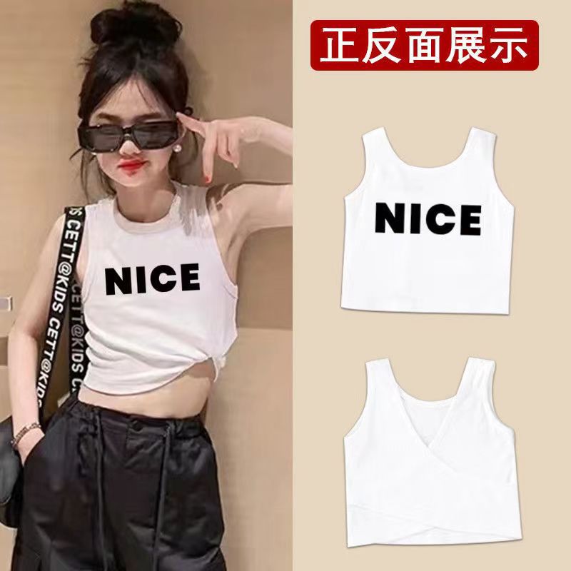 여자 슬림 핏 여름 새로운 쇼트 스포츠 민소매 백리스 탑 슬링 인쇄 편지 외부 착용 크로스 조끼스토어 가기