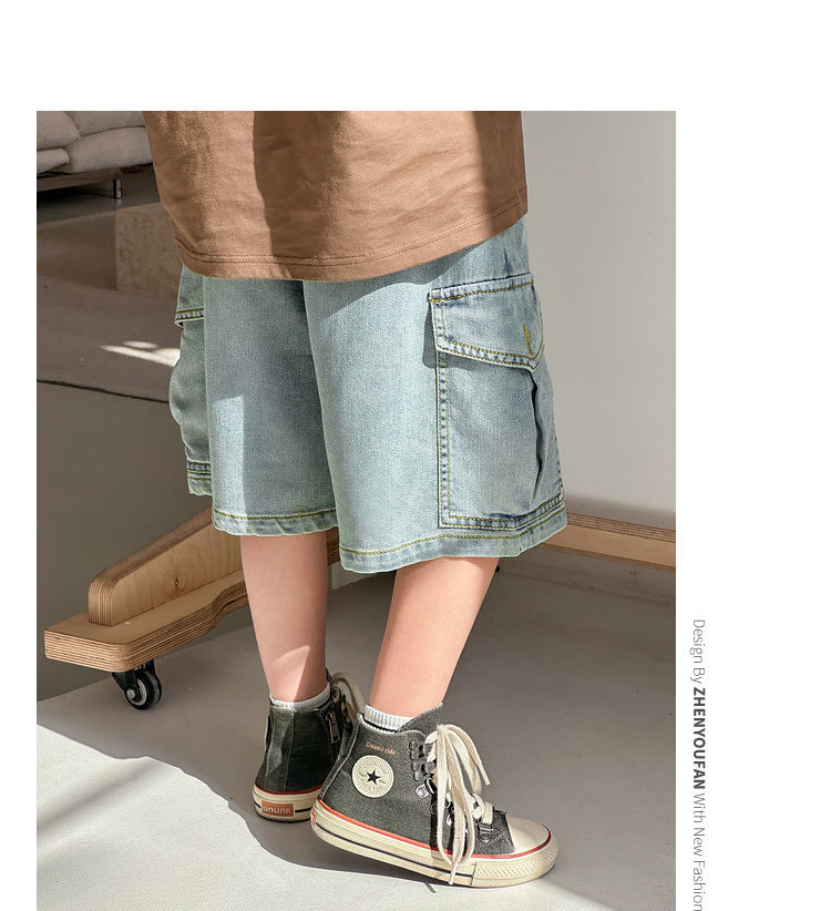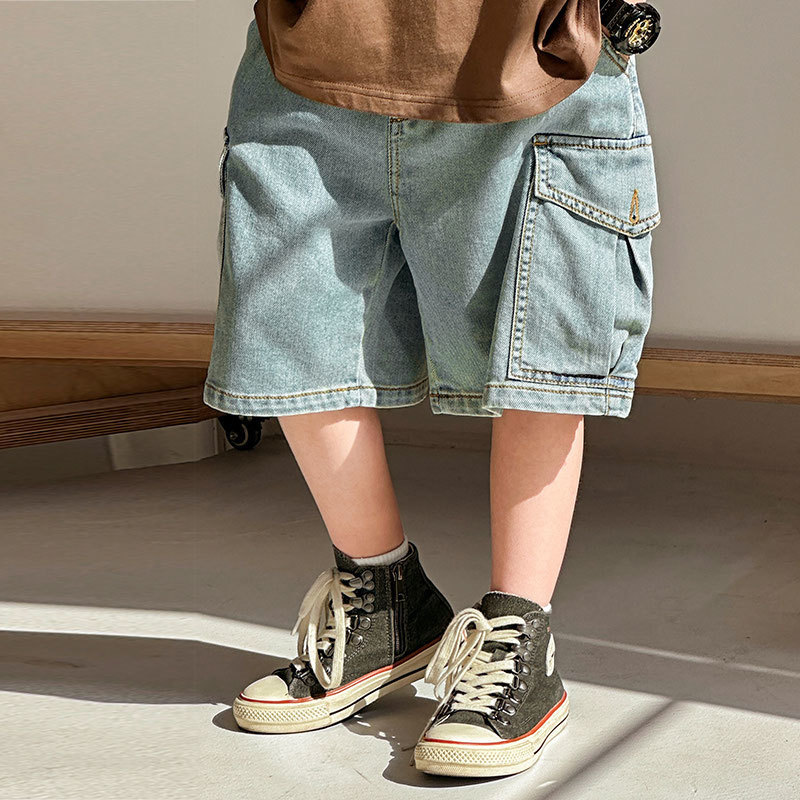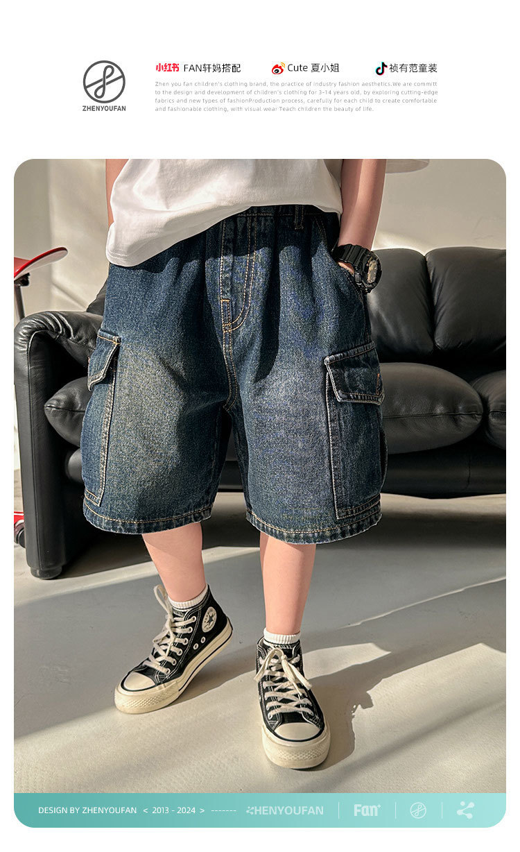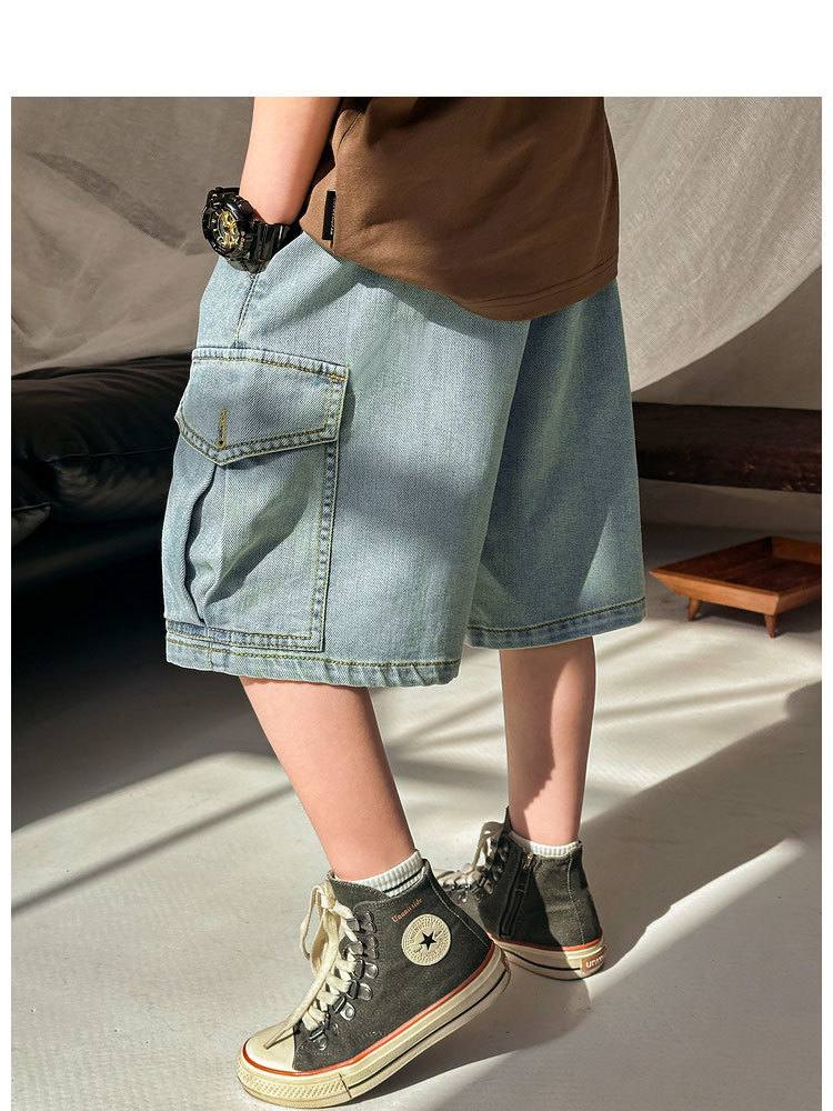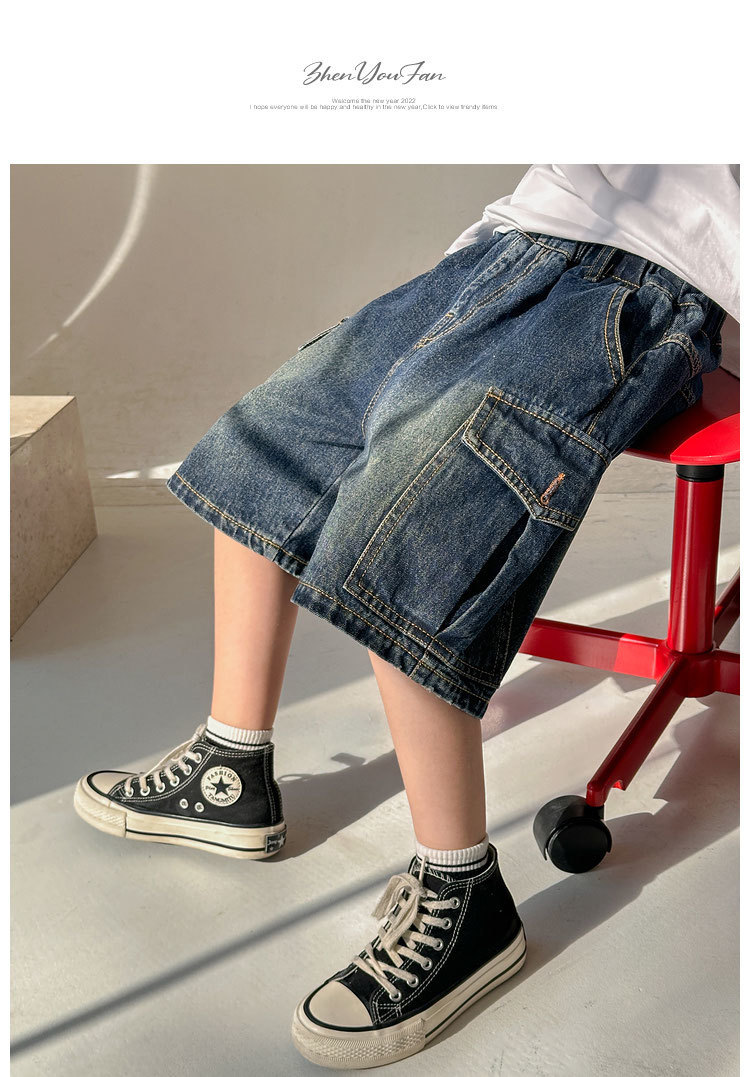 새로운 소년 2024 데님 어린이 반바지 여름 데님 반바지스토어 가기