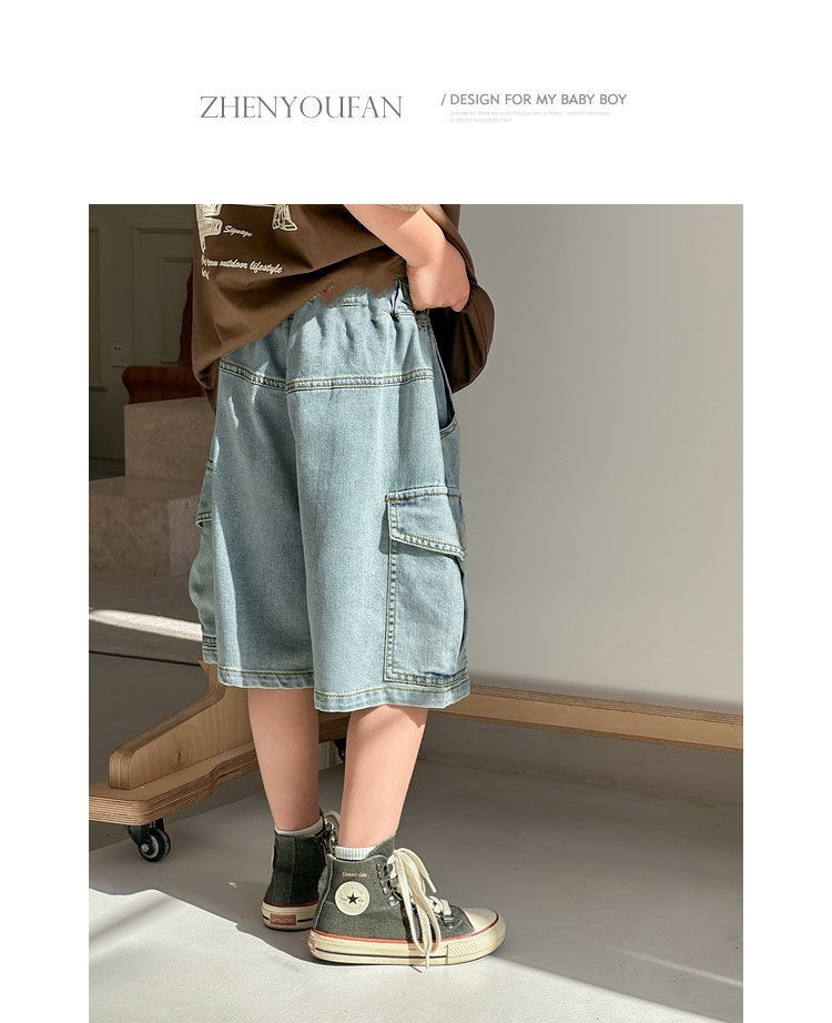 새로운 소년 2024 데님 어린이 반바지 여름 데님 반바지
