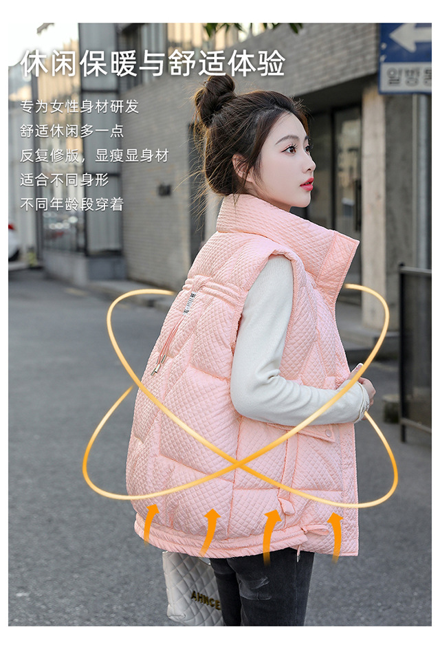 가을 겨울 신상 다운 코튼 여성 조끼, 따뜻한 고급 조끼, 루즈한 대형 패션 조끼, 두꺼운 아우터스토어 가기