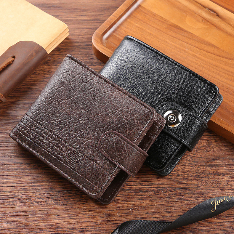 공장 도매 새로운 남성 지갑 PU 가죽 짧은 대외 무역 국경 버클 비즈니스 복고풍 멀티 카드 동전 지갑스토어 가기