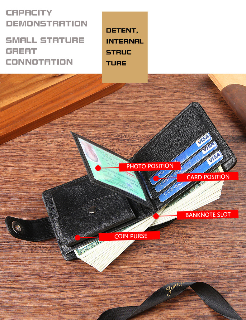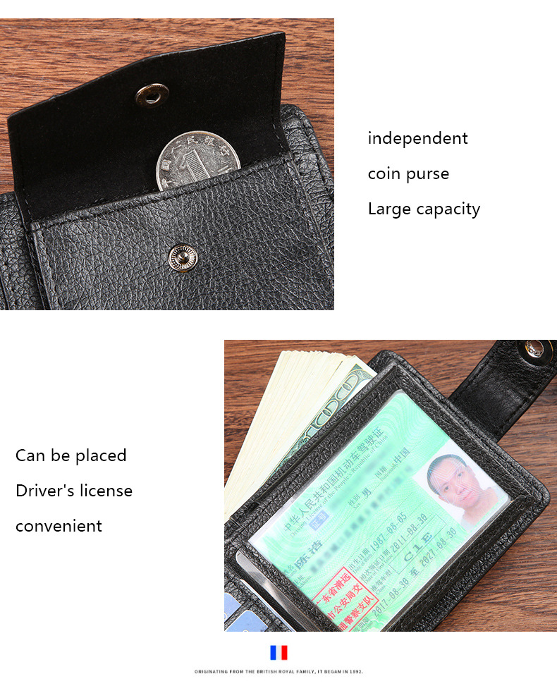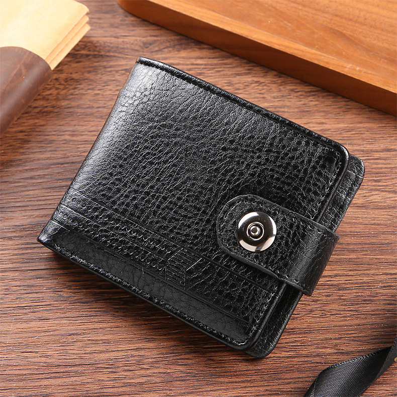 공장 도매 새로운 남성 지갑 PU 가죽 짧은 대외 무역 국경 버클 비즈니스 복고풍 멀티 카드 동전 지갑
