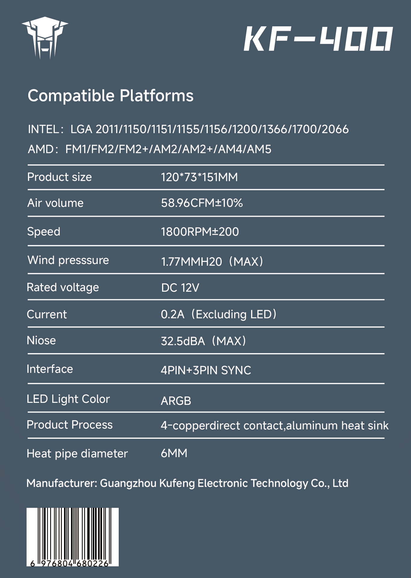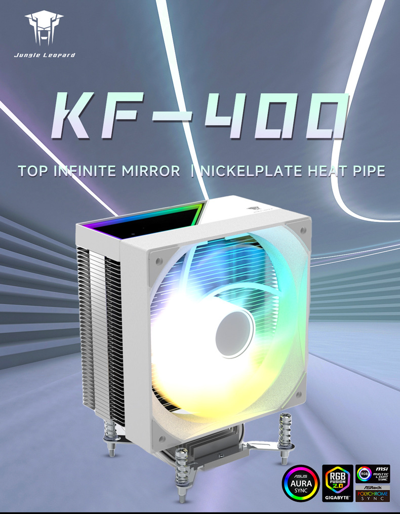 정글 레오파드 KF400 라디에이터 라자냐 거울 ARGB 빛 4 핀 온도 제어 데스크탑 컴퓨터 cpu 음소거 방열