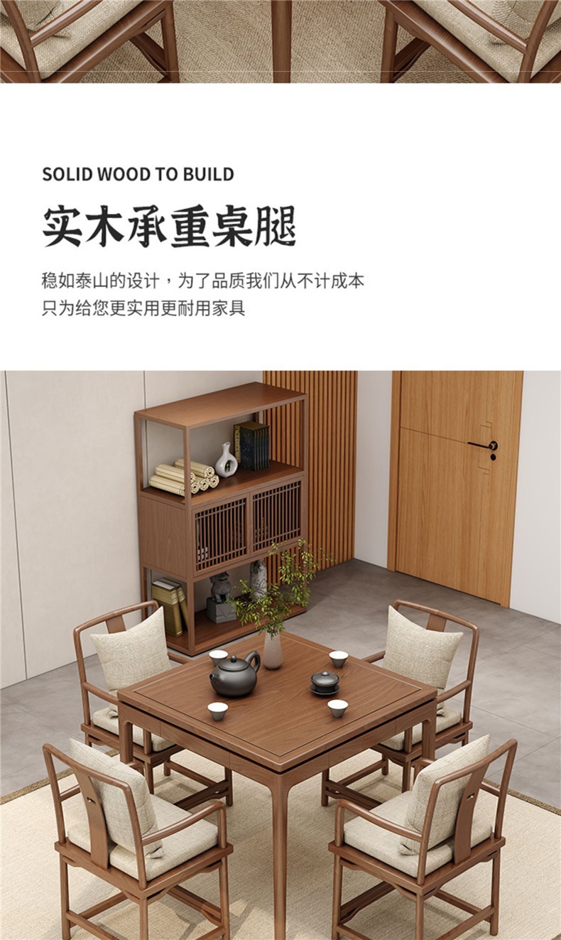 새로운 중국 스타일의 솔리드 우드 티 테이블 다인 호텔 티 하우스 체스 및 카드 룸 8 명의 불멸 자 테이블 로그 스퀘어 마작 테이블과 의자 조합