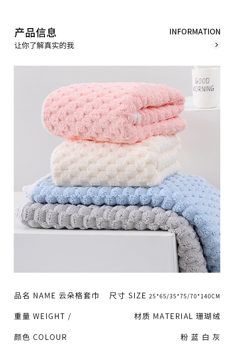 구름 격자 수건 목욕 타월 세트 두꺼운 흡수성 거북이 벨벳 페이스 타월 가정용 매일 목욕 타월 드라이 헤어 타월스토어 가기