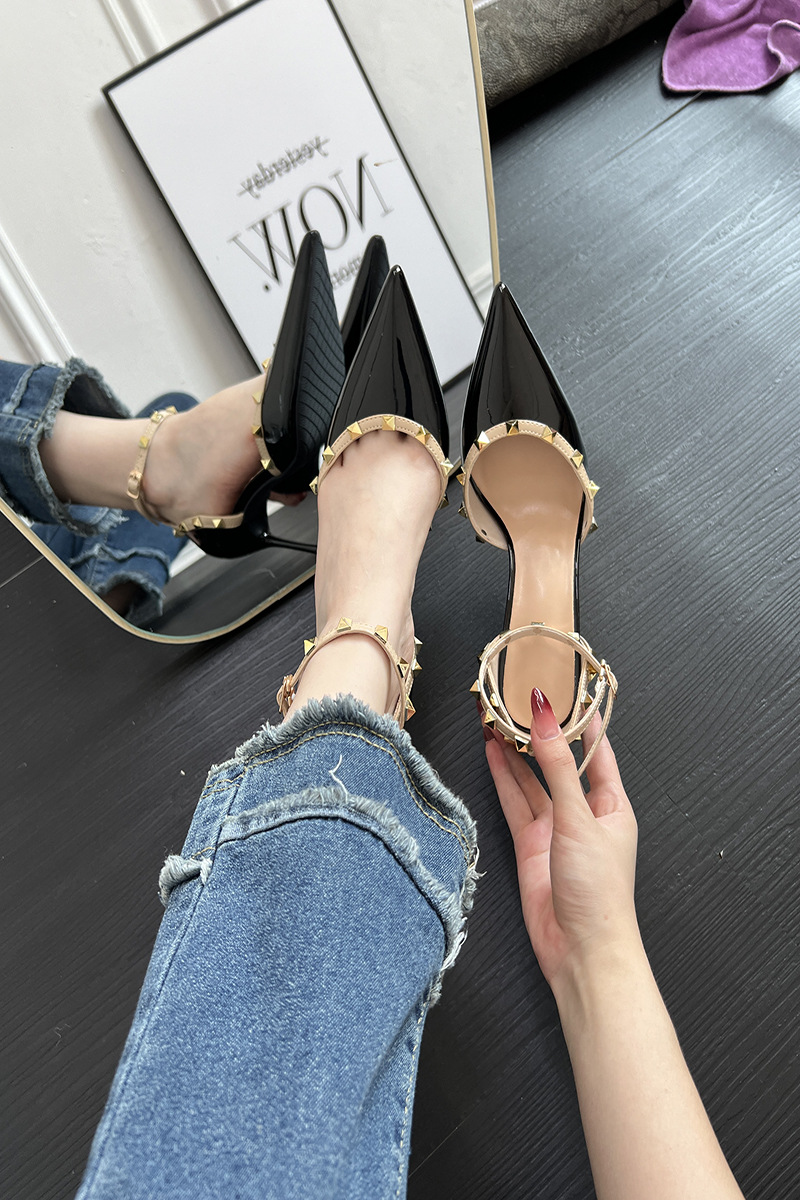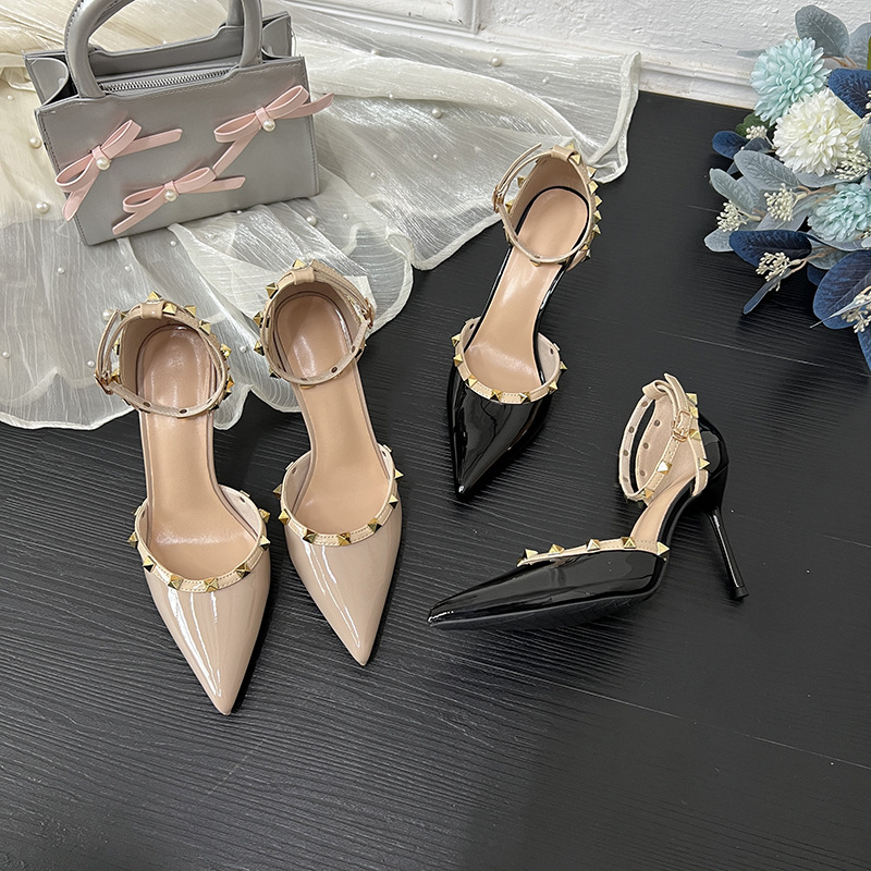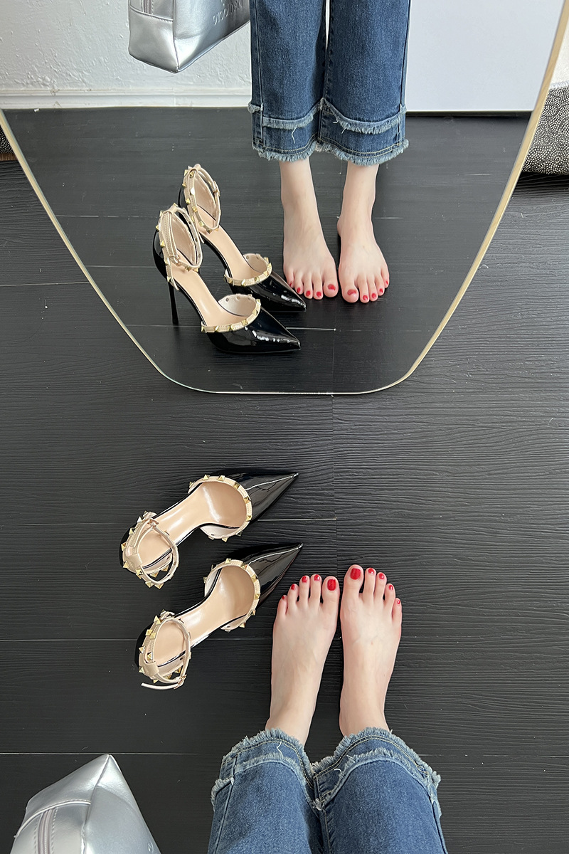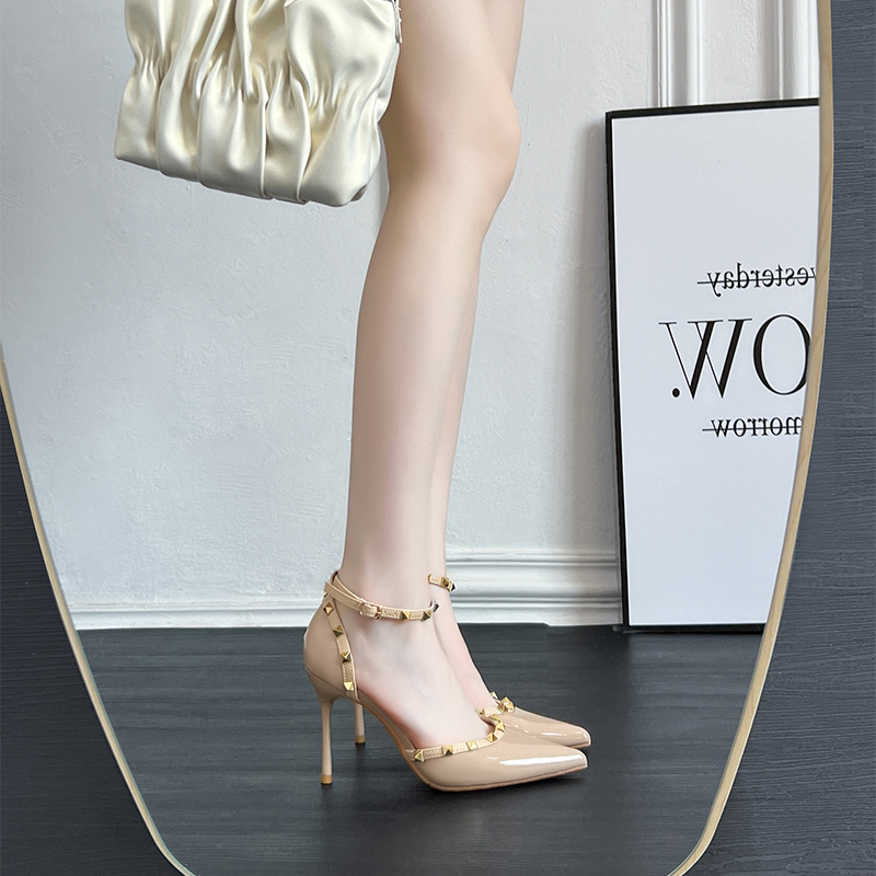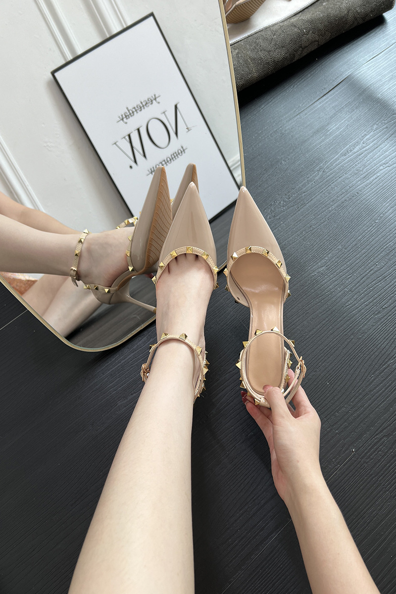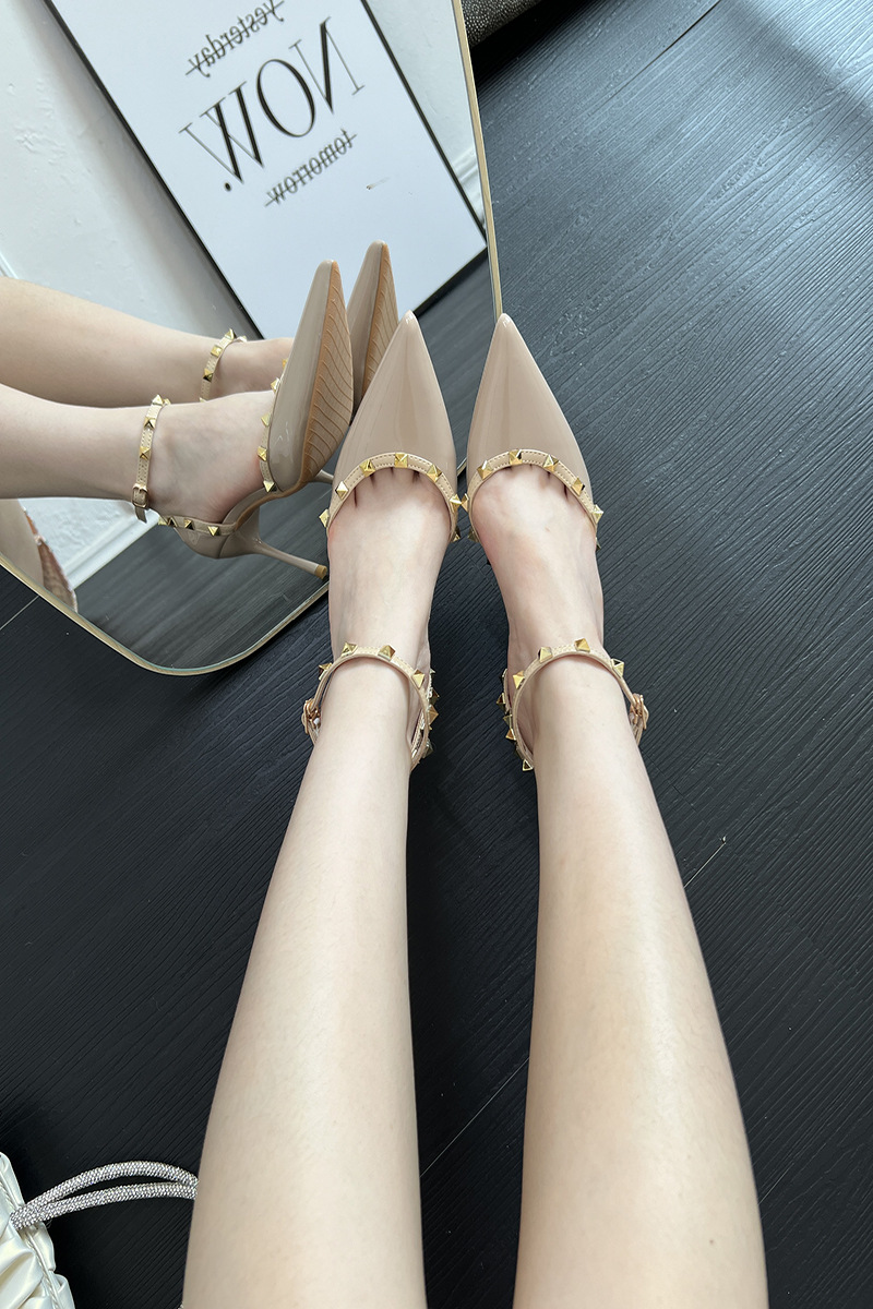 프랑스 누드 뾰족한 아름다운 하이힐 여성 2024 새로운 봄과 여름 Liu Ding 섹시한 샌들 리벳 신발 여성스토어 가기