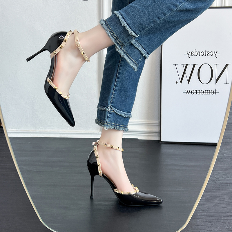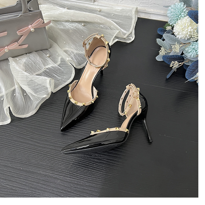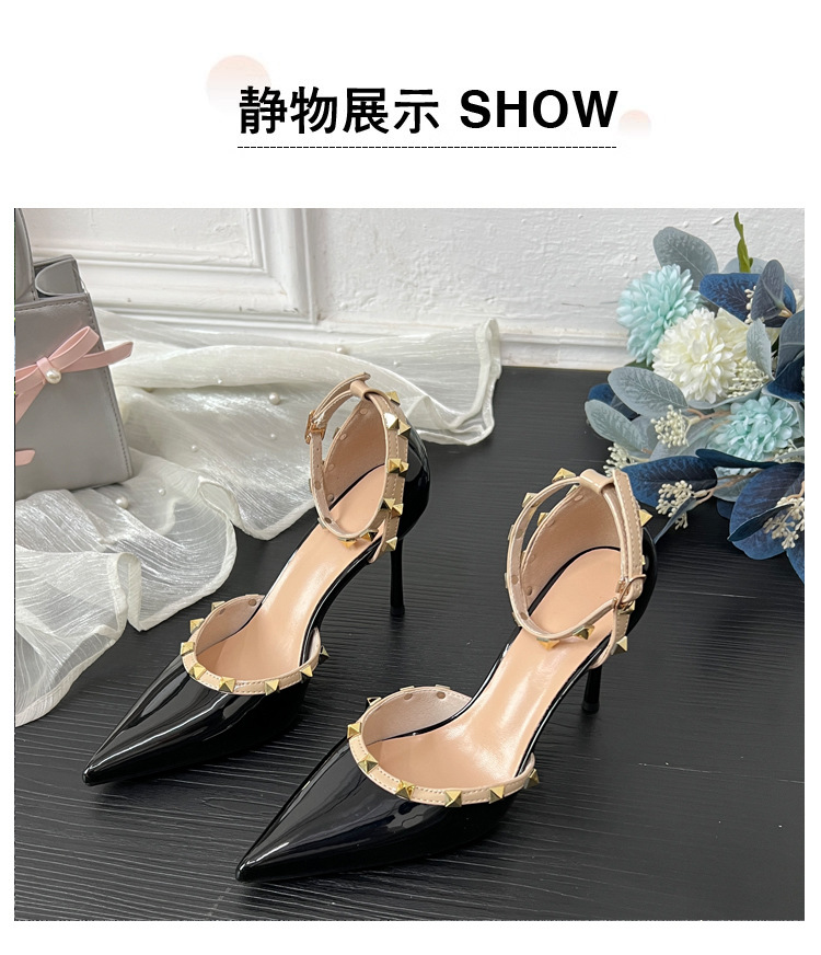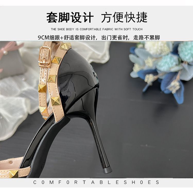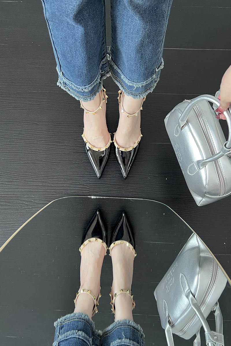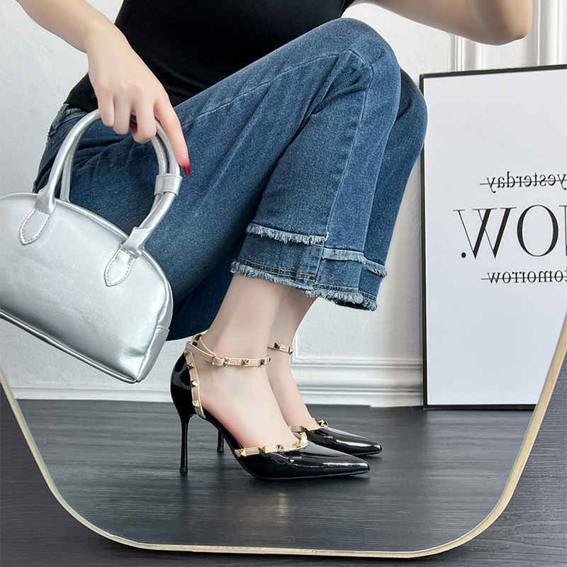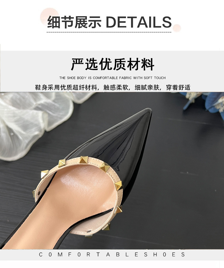 프랑스 누드 뾰족한 아름다운 하이힐 여성 2024 새로운 봄과 여름 Liu Ding 섹시한 샌들 리벳 신발 여성스토어 가기