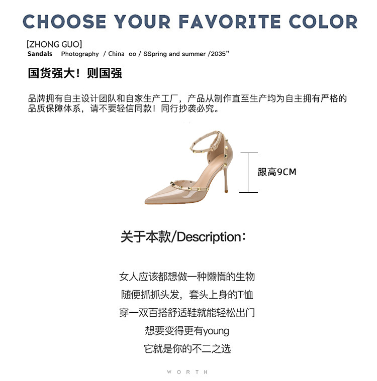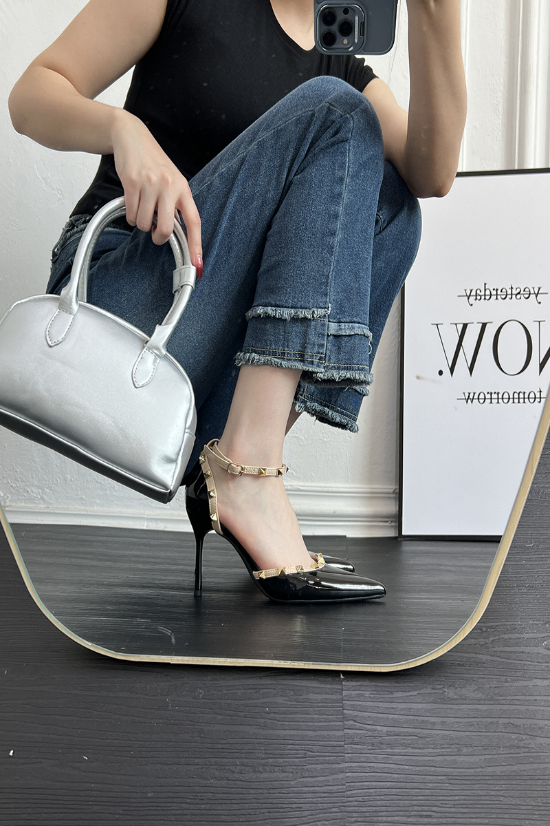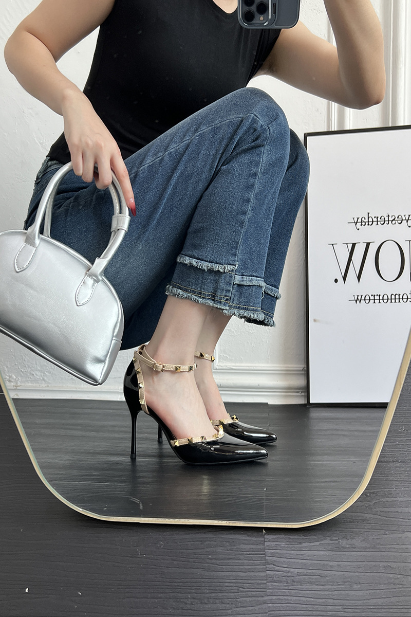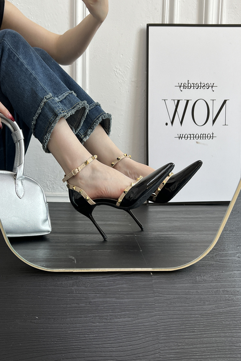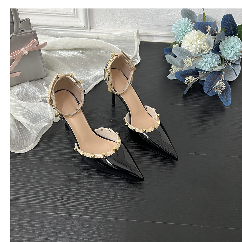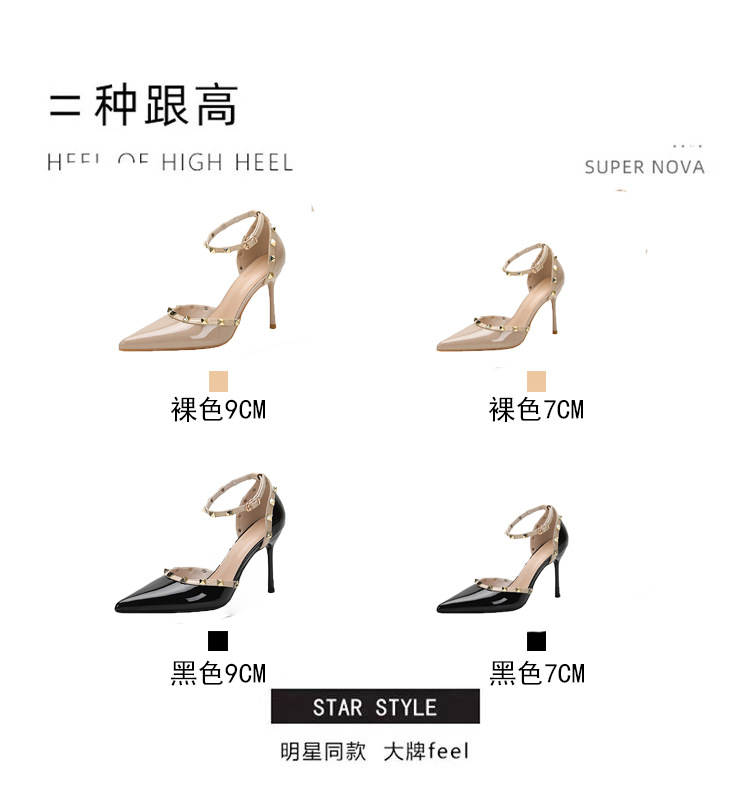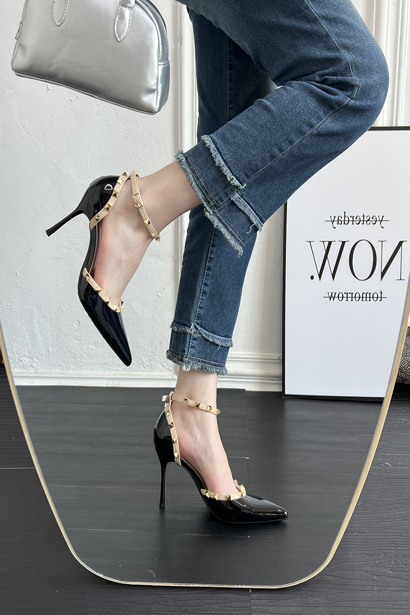 프랑스 누드 뾰족한 아름다운 하이힐 여성 2024 새로운 봄과 여름 Liu Ding 섹시한 샌들 리벳 신발 여성스토어 가기
