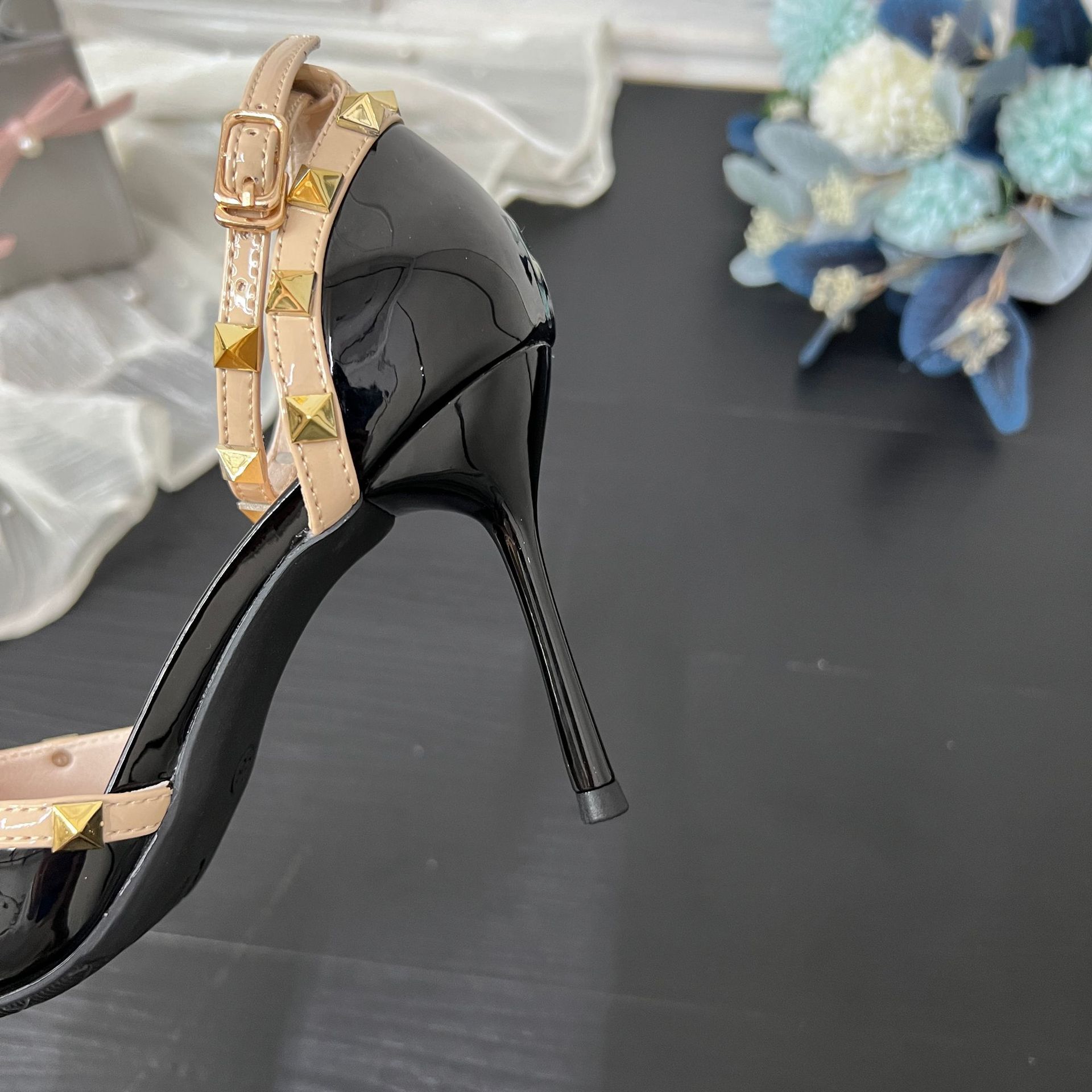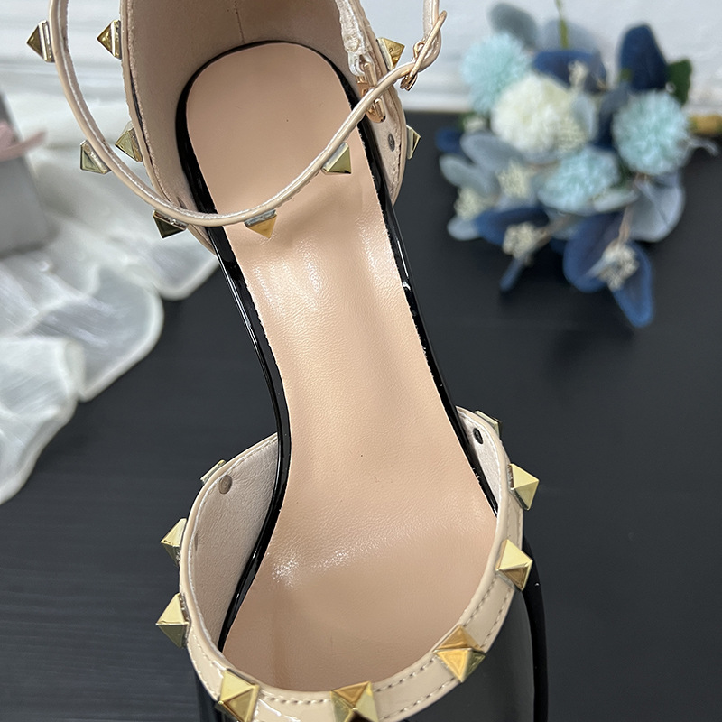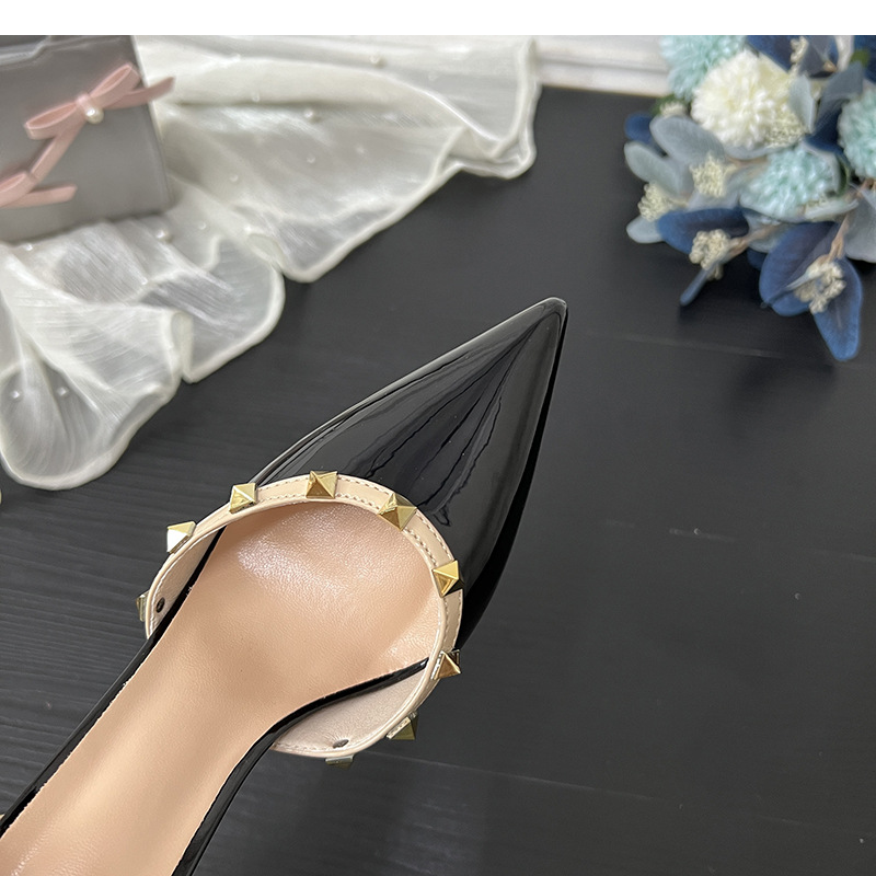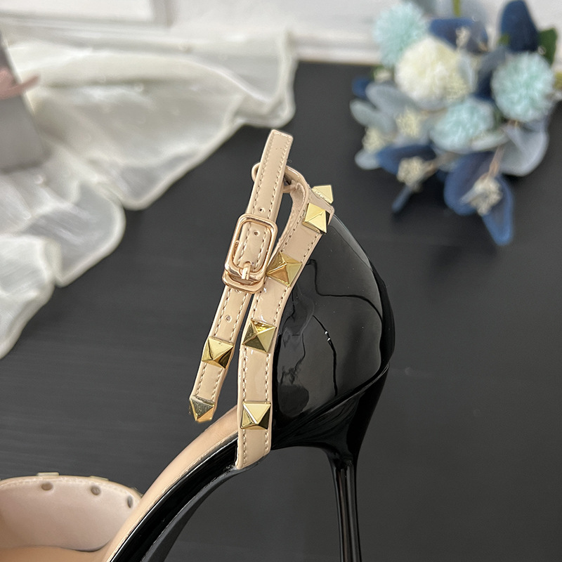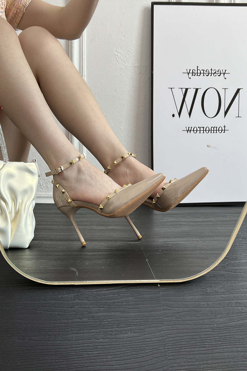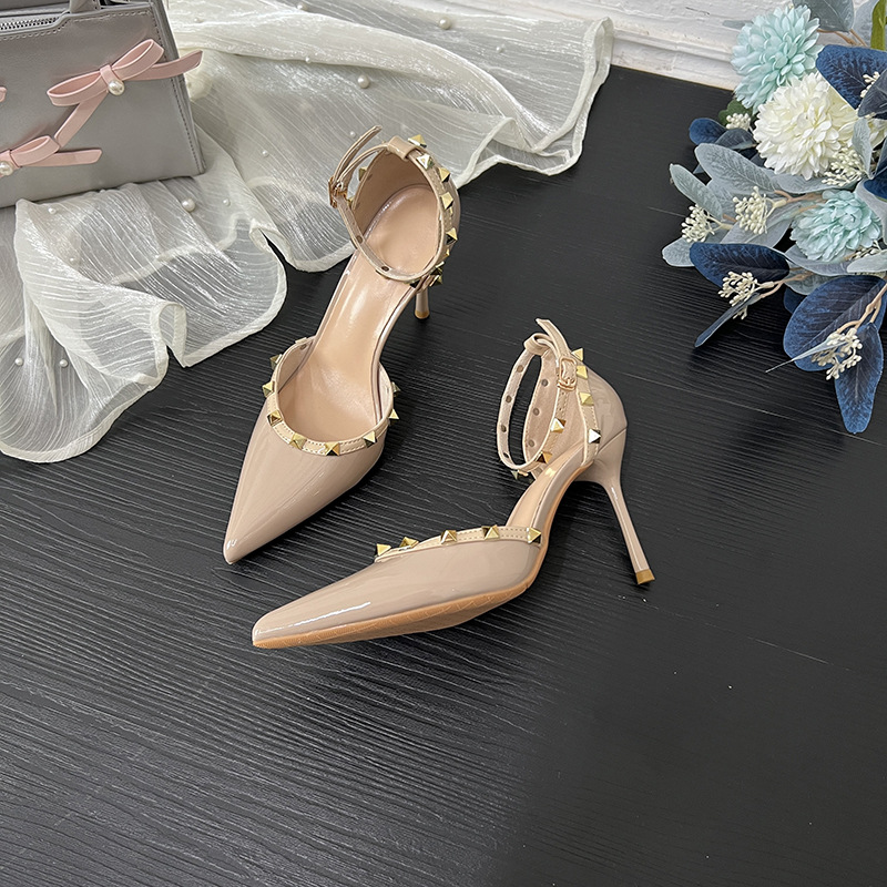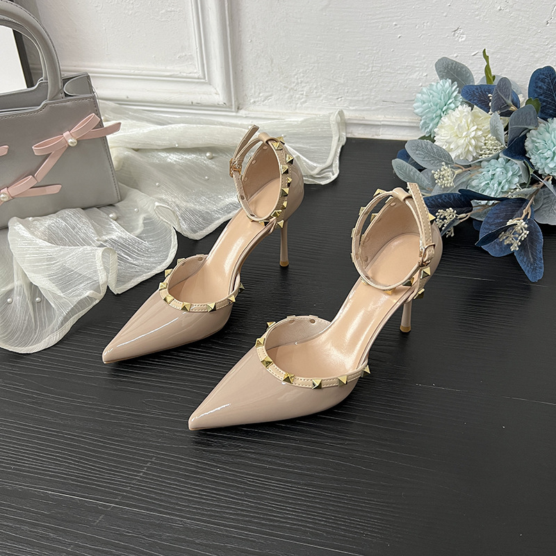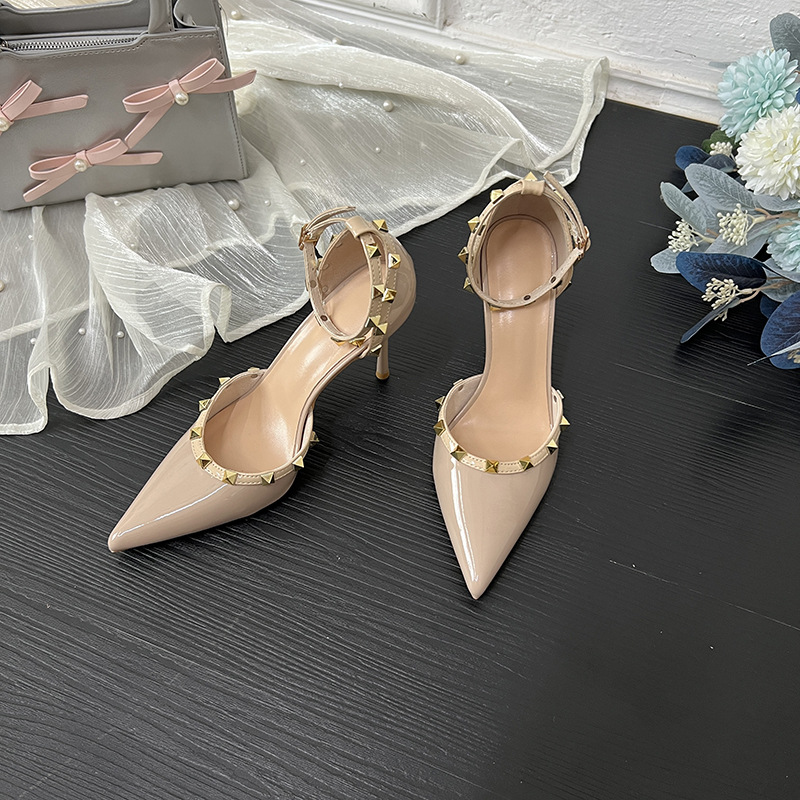 프랑스 누드 뾰족한 아름다운 하이힐 여성 2024 새로운 봄과 여름 Liu Ding 섹시한 샌들 리벳 신발 여성