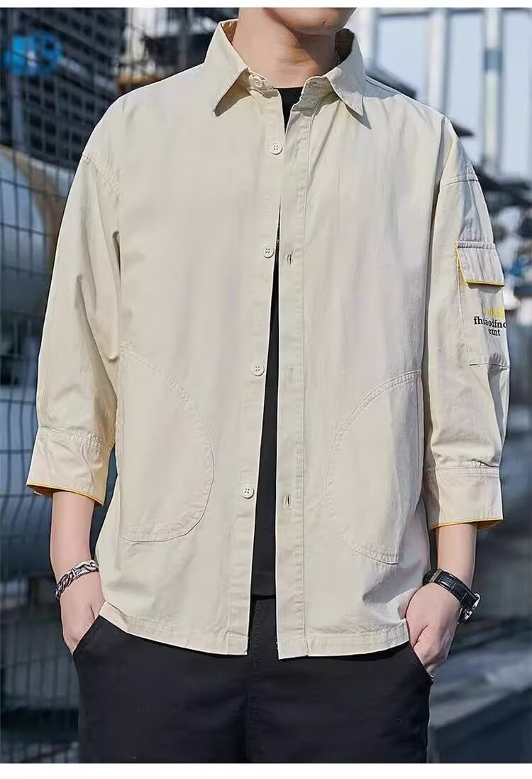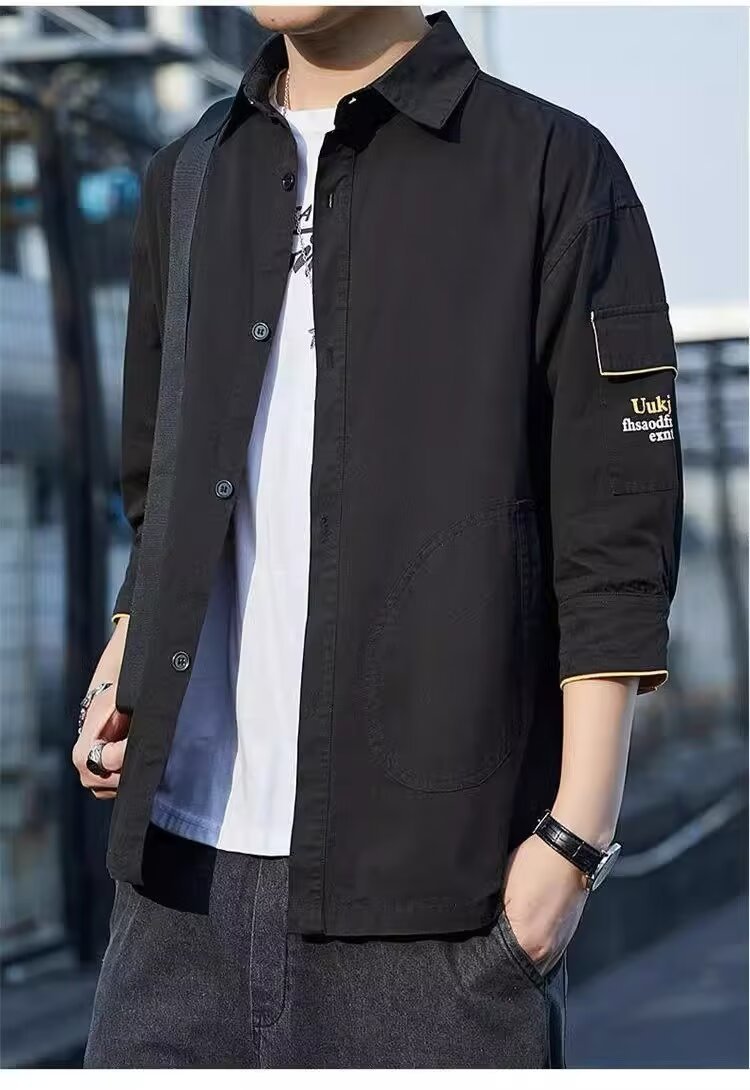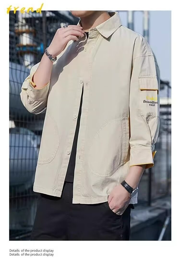 2024 남자 봄과 가을 수직 칼라 작업 코트 트렌디 브랜드 올매치 느슨한 캐주얼 남성 최고의 한국 재킷스토어 가기