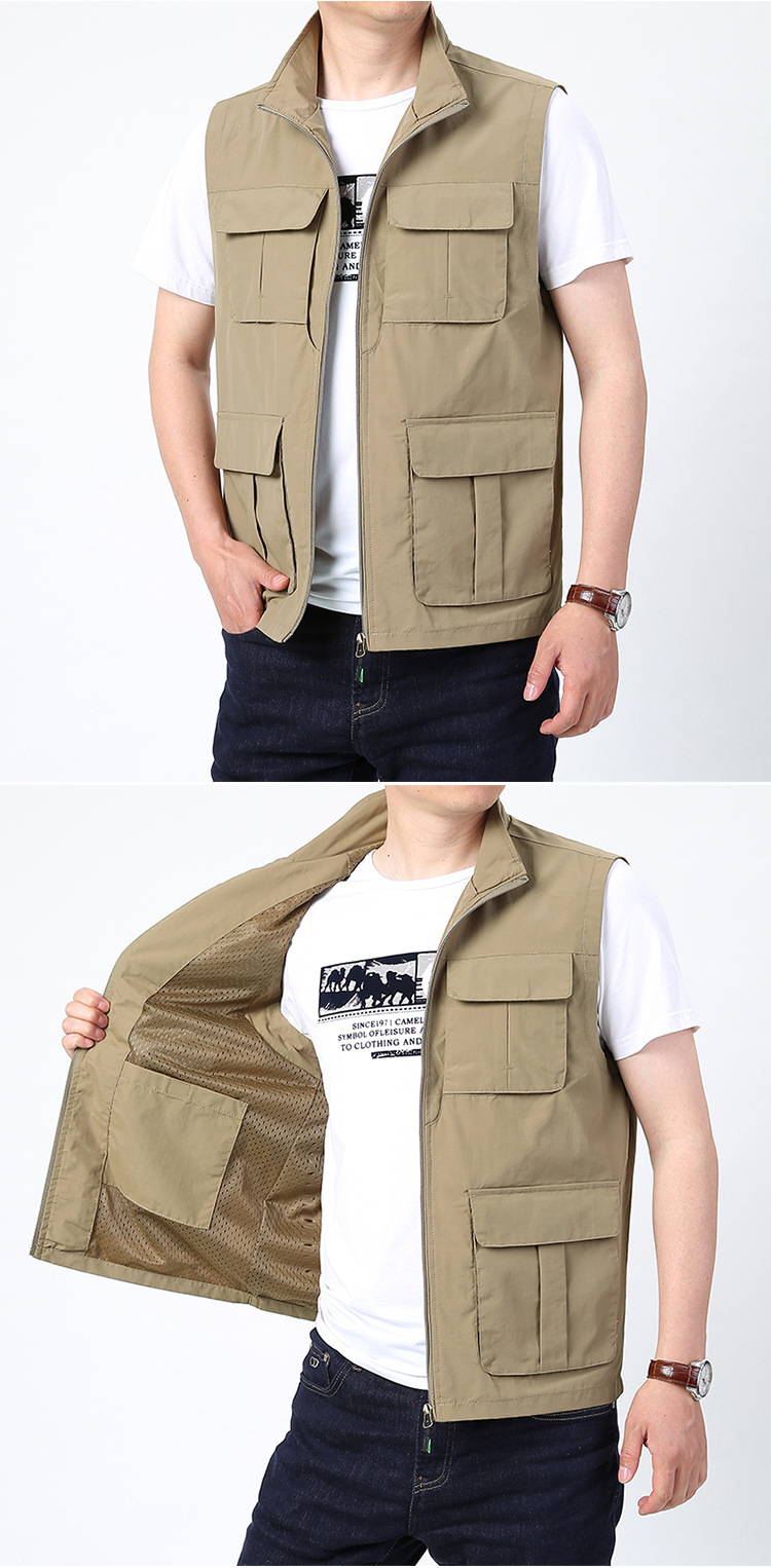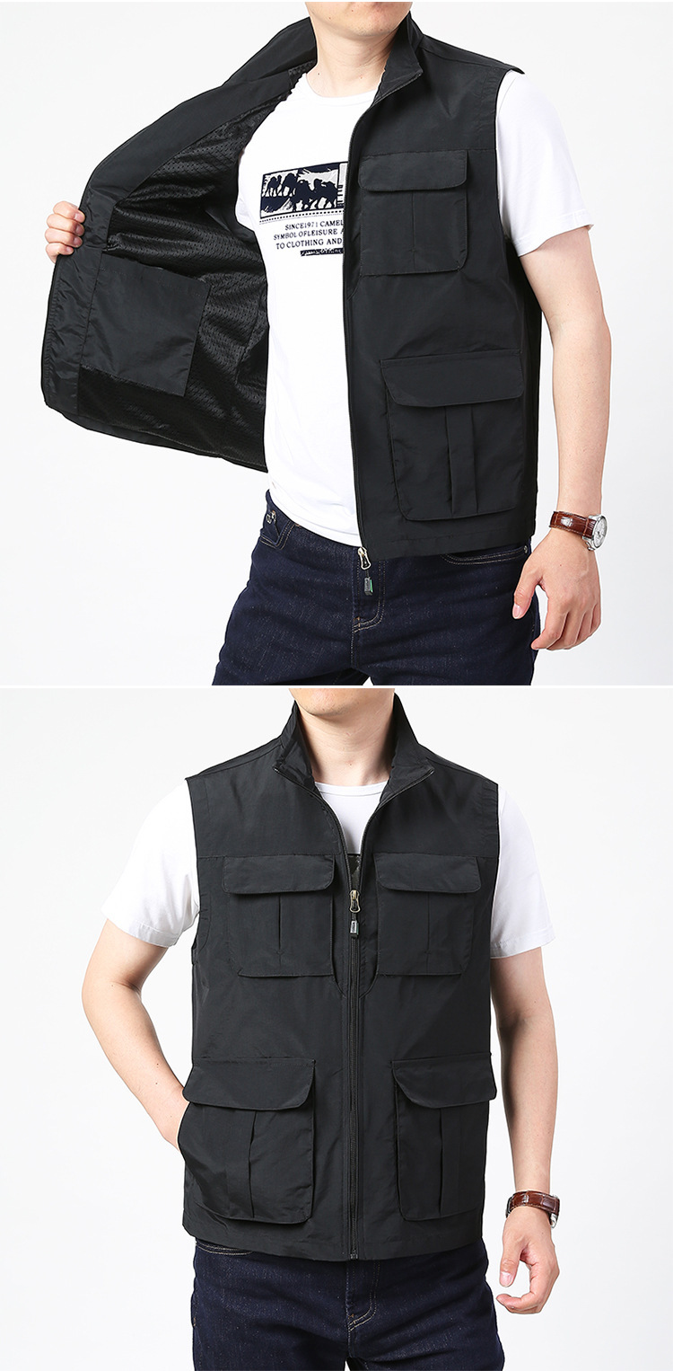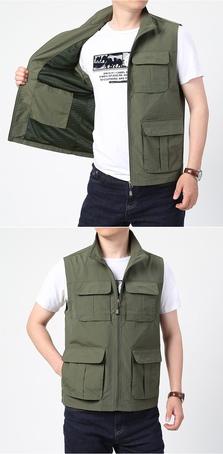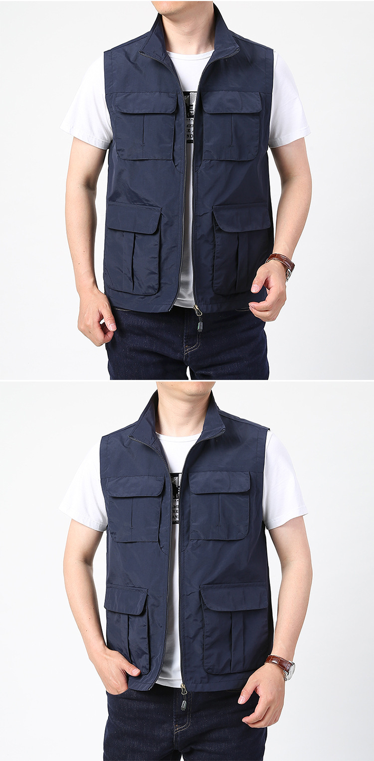 조끼 남자의 봄과 가을 느슨한 멀티 포켓 조끼 야외 낚시 등산 사진 툴링 웨이스트 코트 오버볼