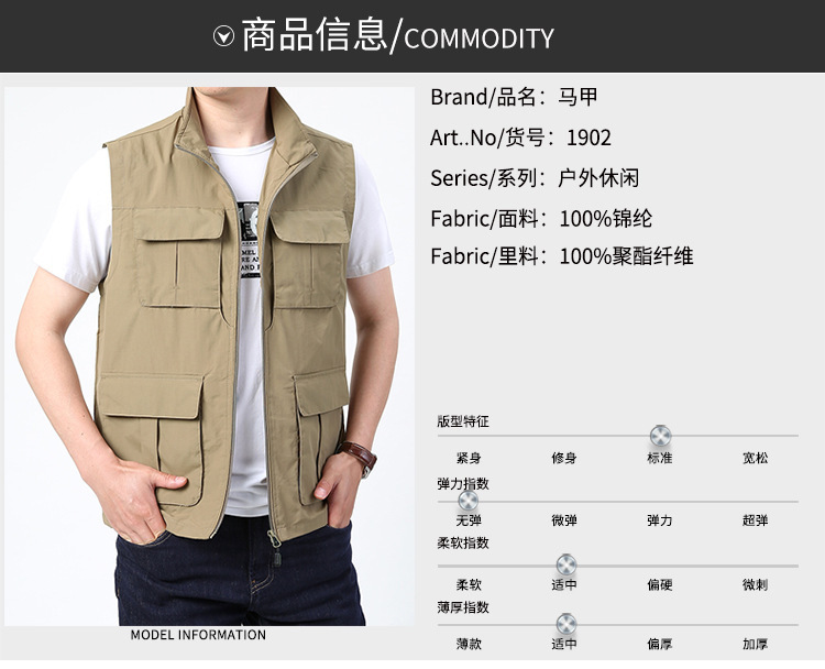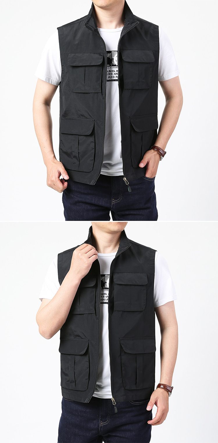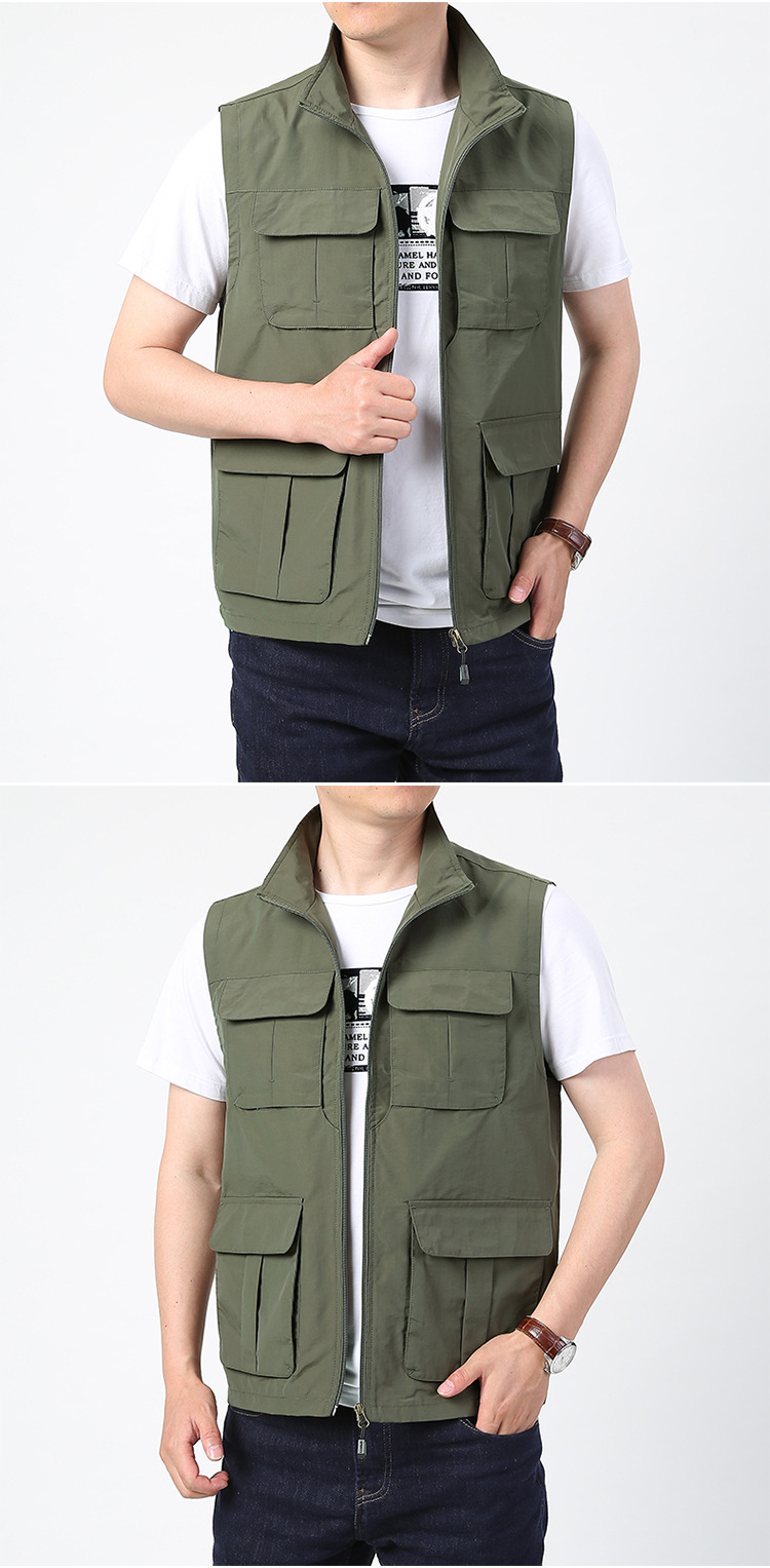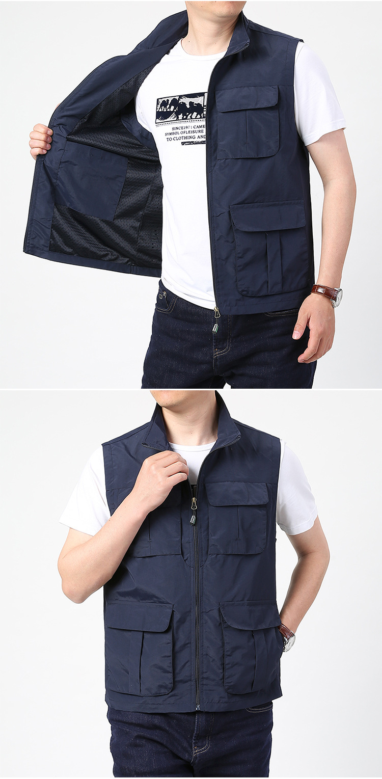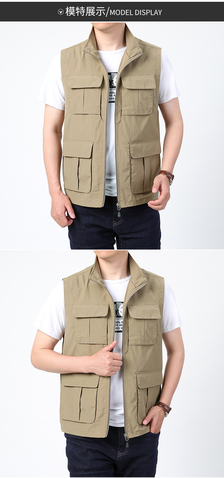 조끼 남자의 봄과 가을 느슨한 멀티 포켓 조끼 야외 낚시 등산 사진 툴링 웨이스트 코트 오버볼