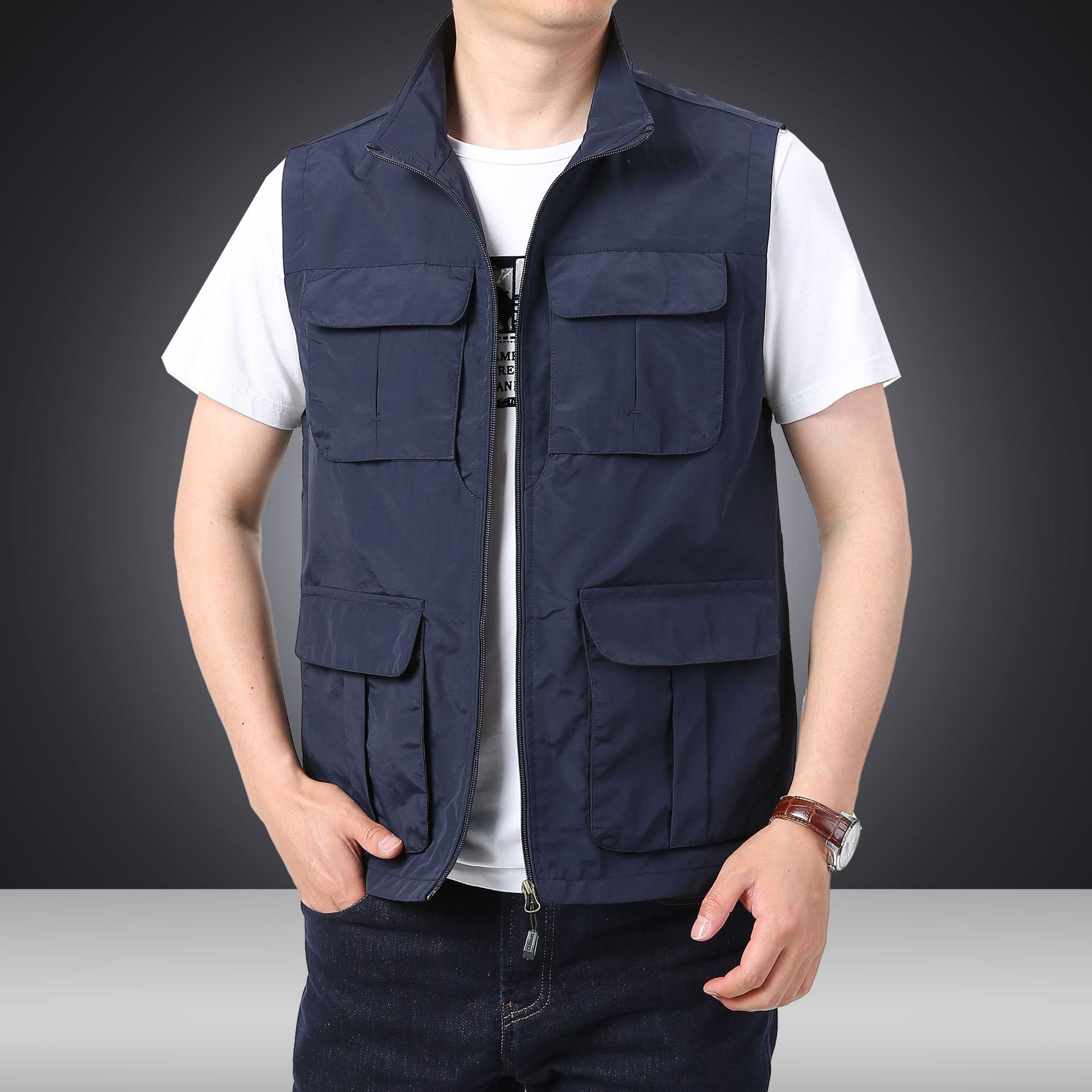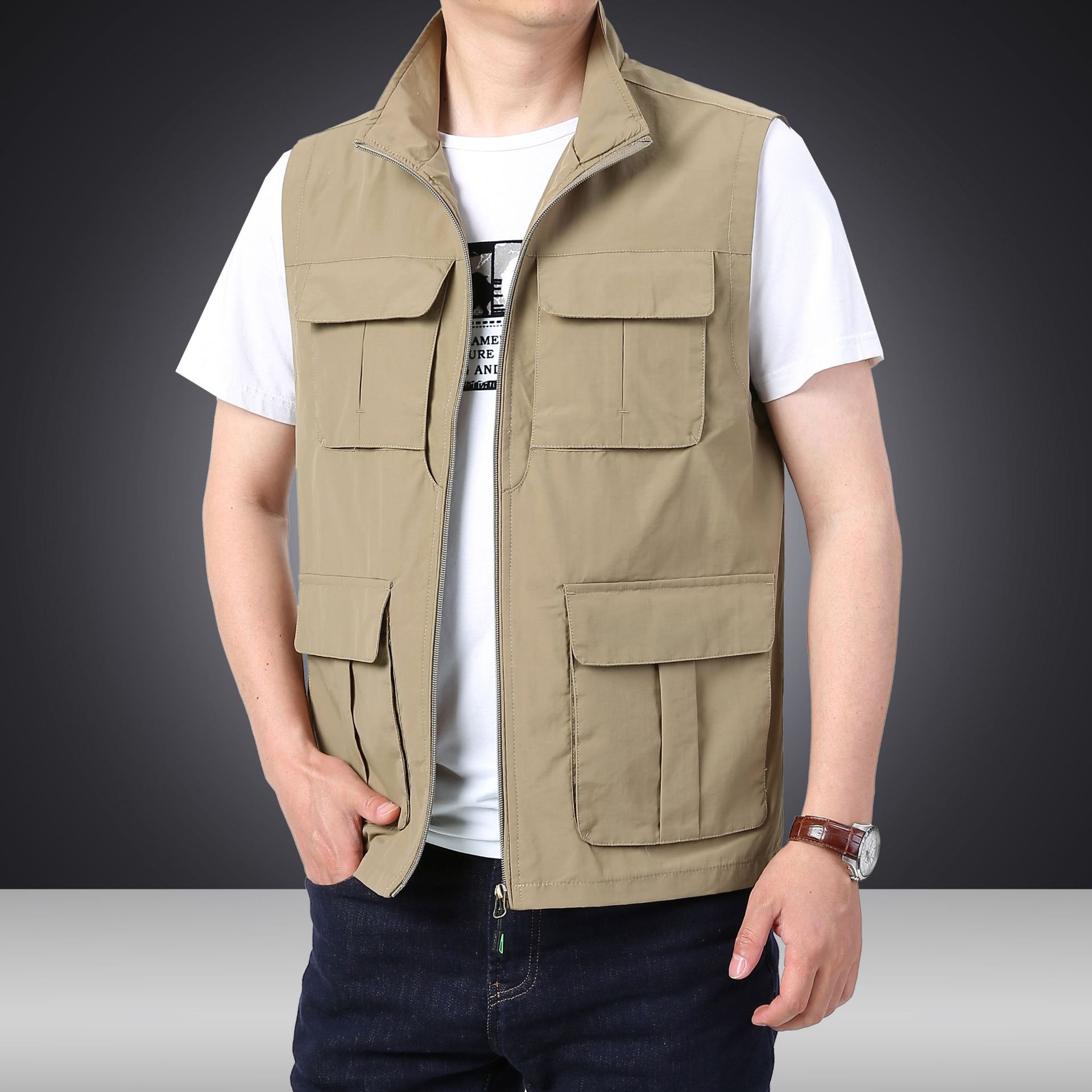 조끼 남자의 봄과 가을 느슨한 멀티 포켓 조끼 야외 낚시 등산 사진 툴링 웨이스트 코트 오버볼스토어 가기