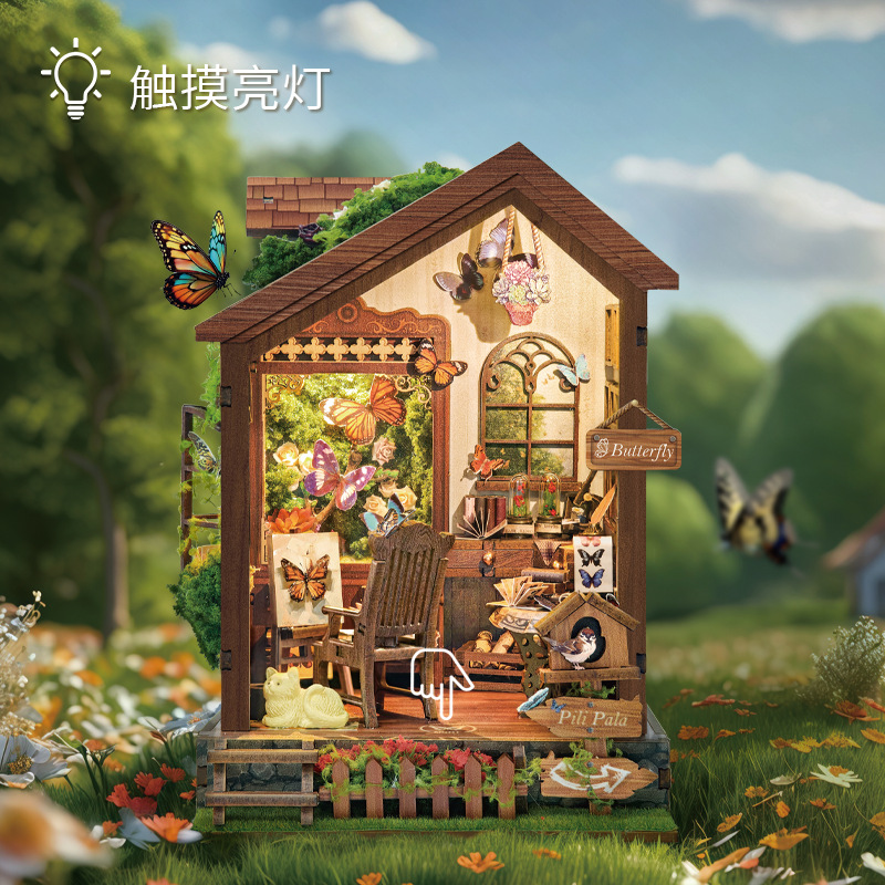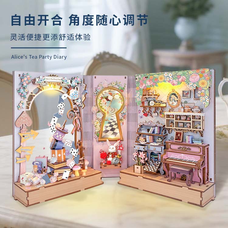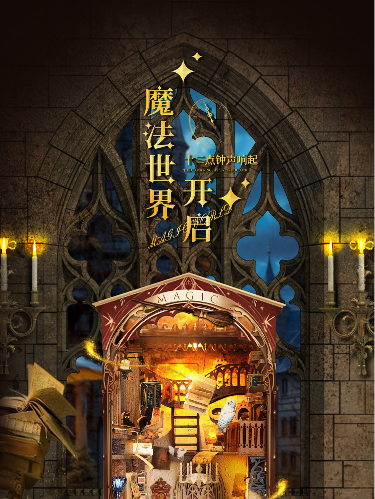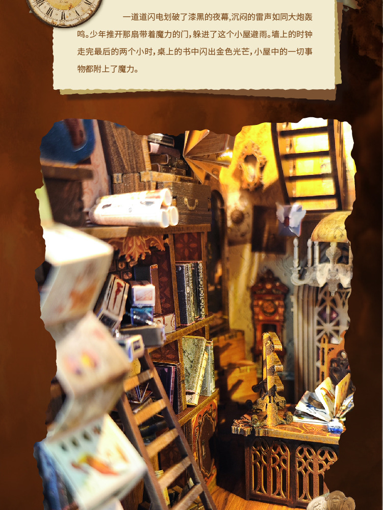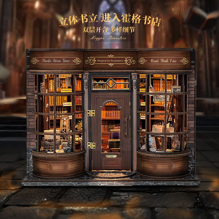 Jingkong diy 캐빈 매직 월드 3D 입체 손으로 조립한 책 스탠드 데스크탑 모델 장난감 휴일 선물스토어 가기