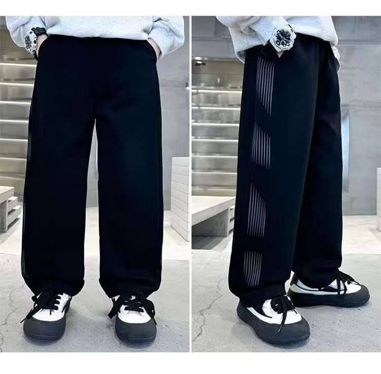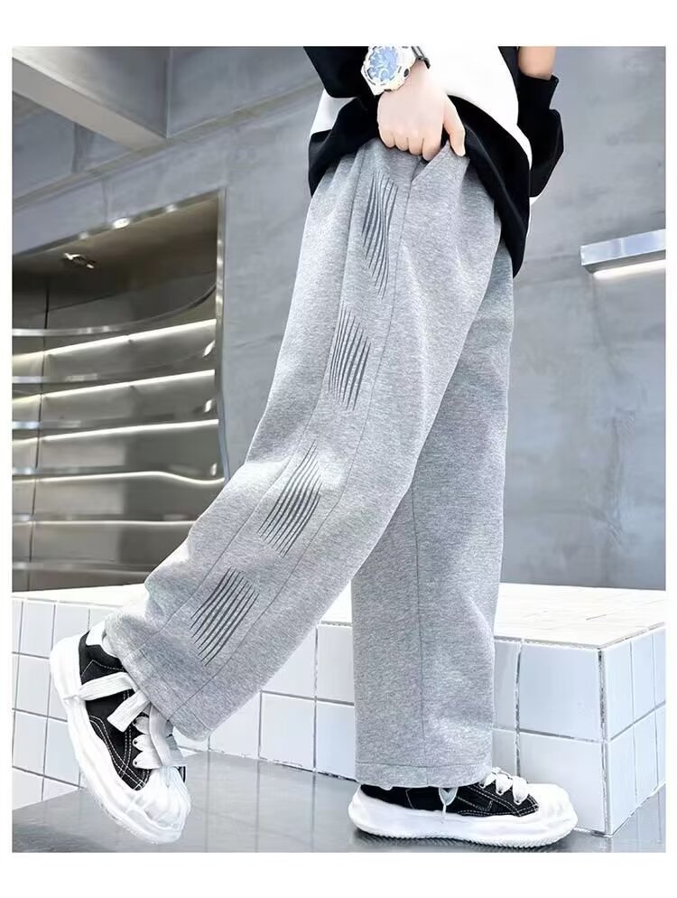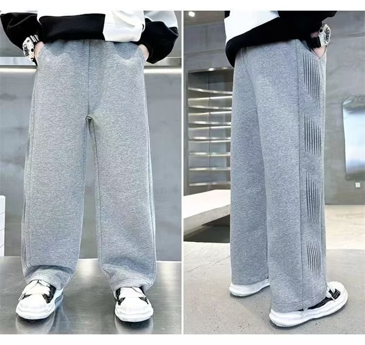 소년 바지 2024 새로운 스타일 중대형 어린이 캐주얼 스포츠 바지 어린이 느슨한 와이드 레그 스트레이트 바지 트렌디스토어 가기