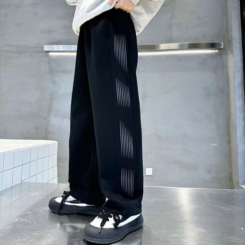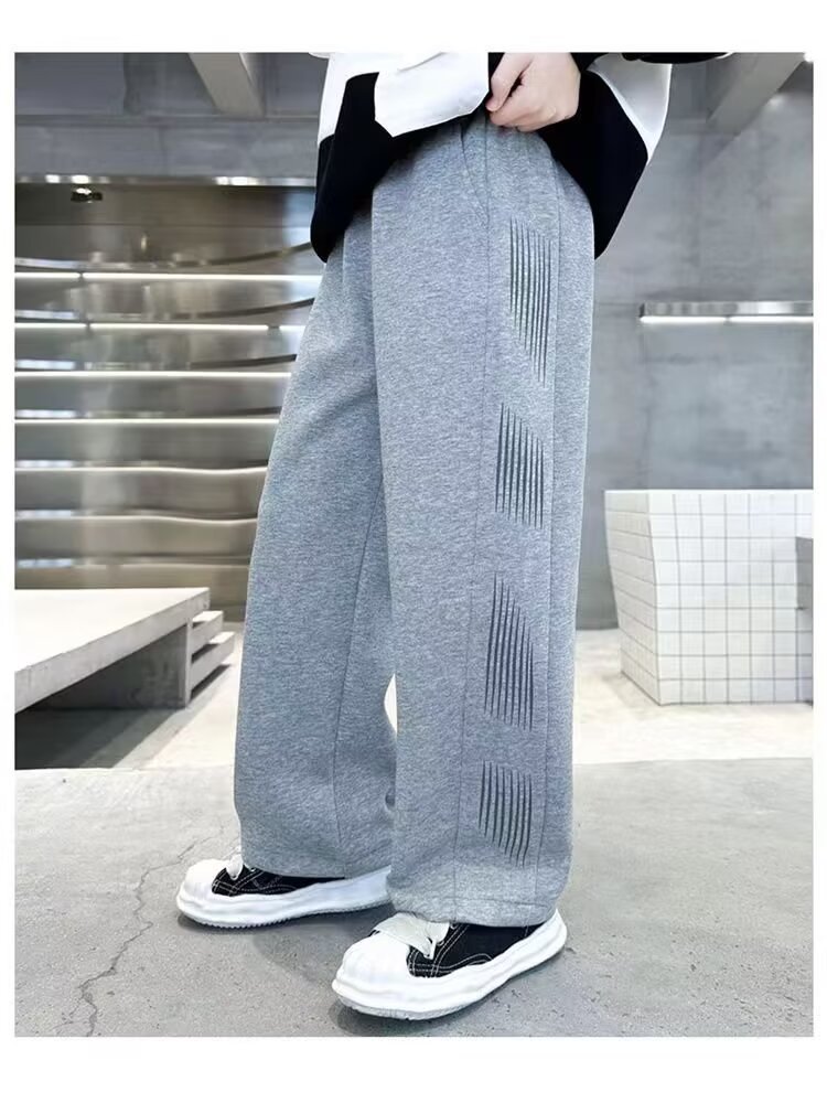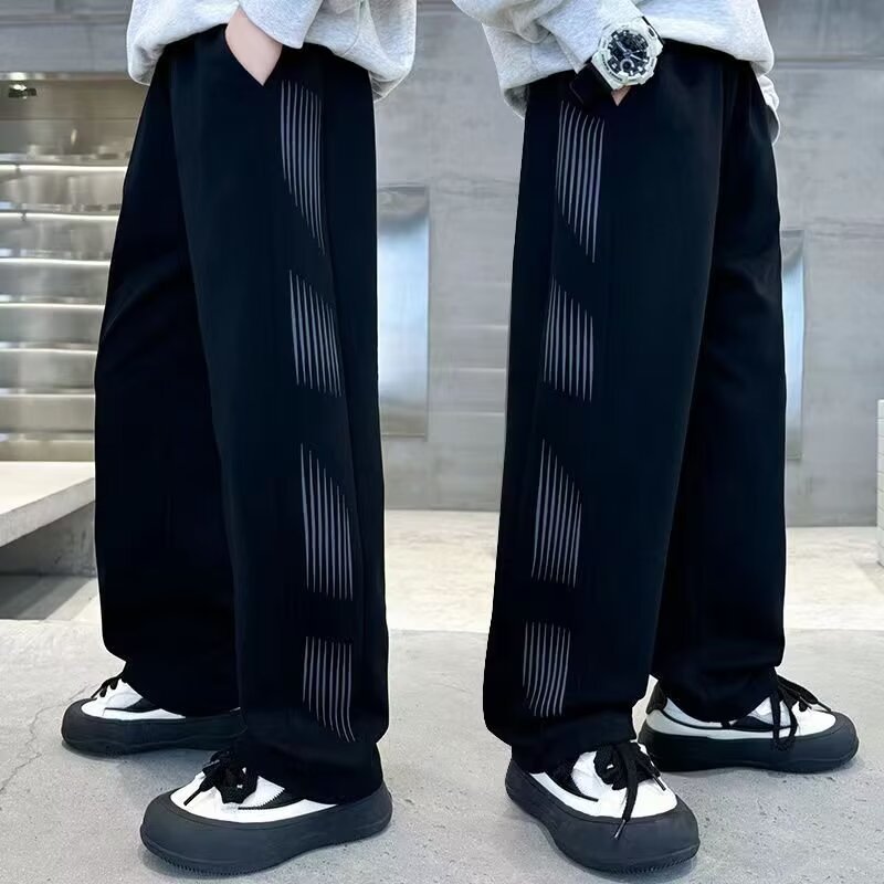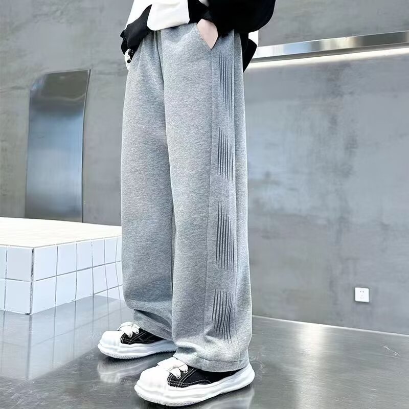 소년 바지 2024 새로운 스타일 중대형 어린이 캐주얼 스포츠 바지 어린이 느슨한 와이드 레그 스트레이트 바지 트렌디