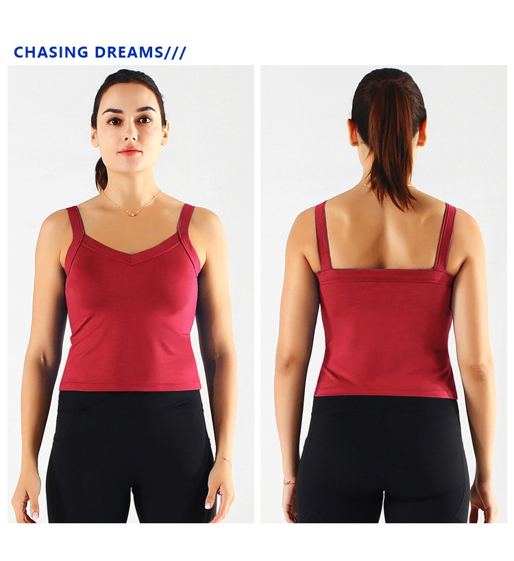 F8196 가슴 패드가 달린 여성 조끼 요가 통기성 빠른 건조 탄성 스포츠 슬링 속옷 피트니스 옷스토어 가기