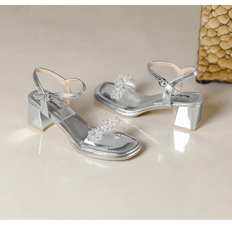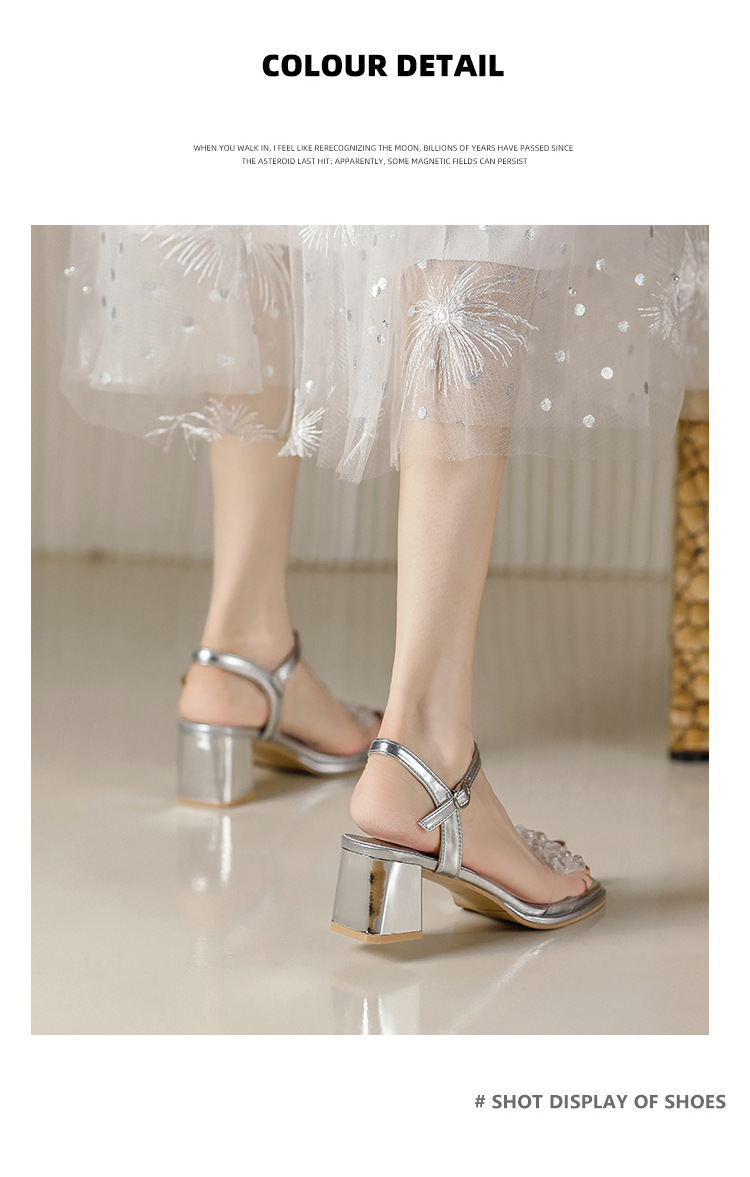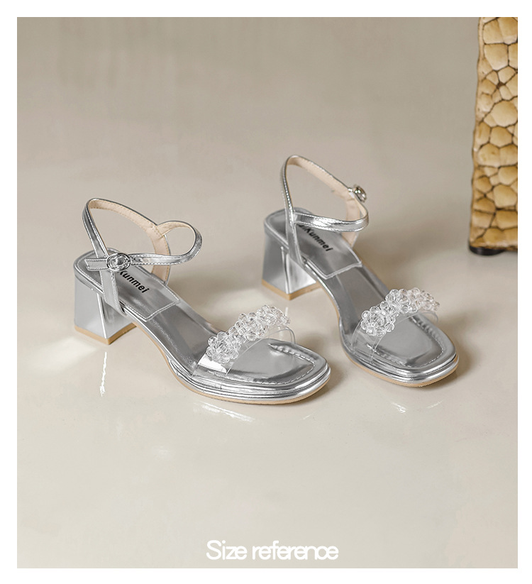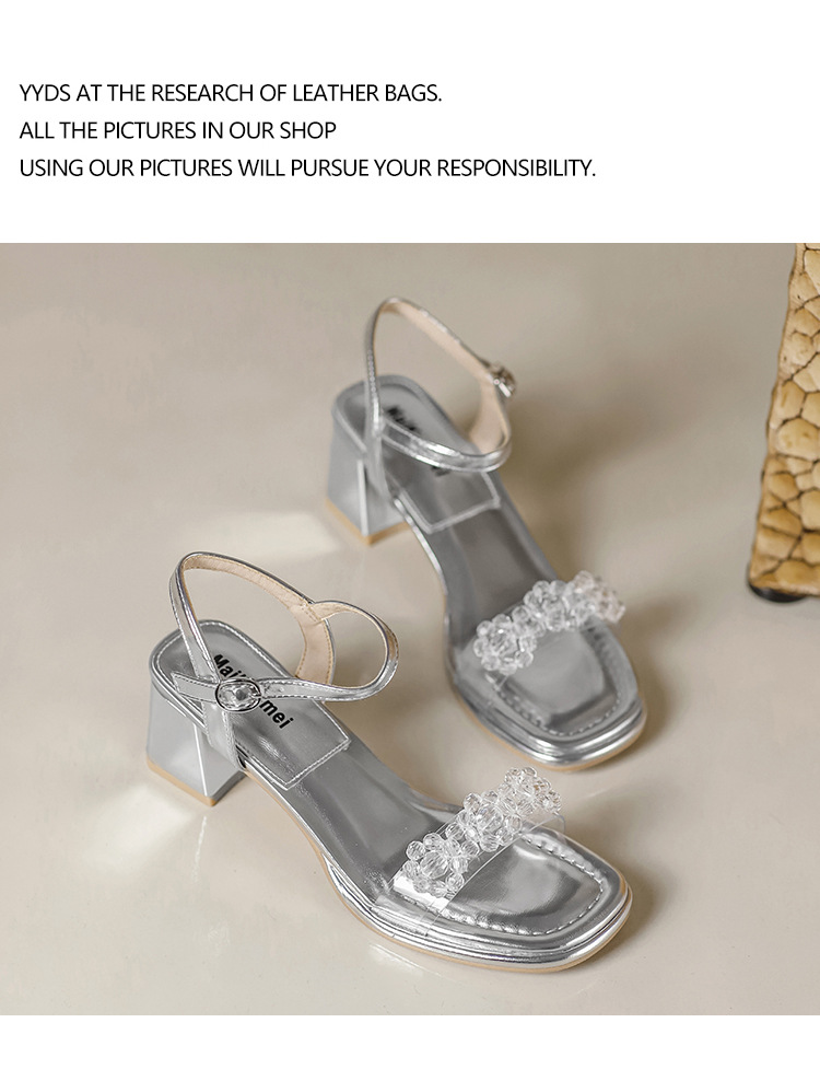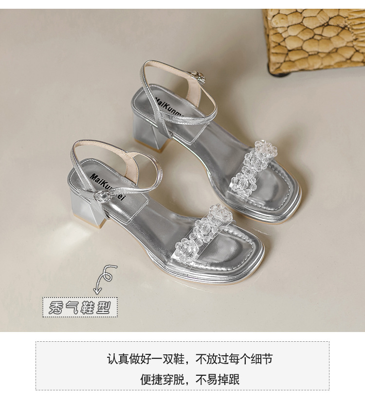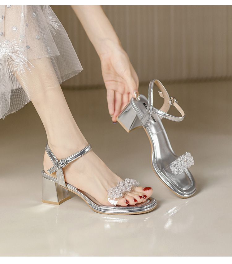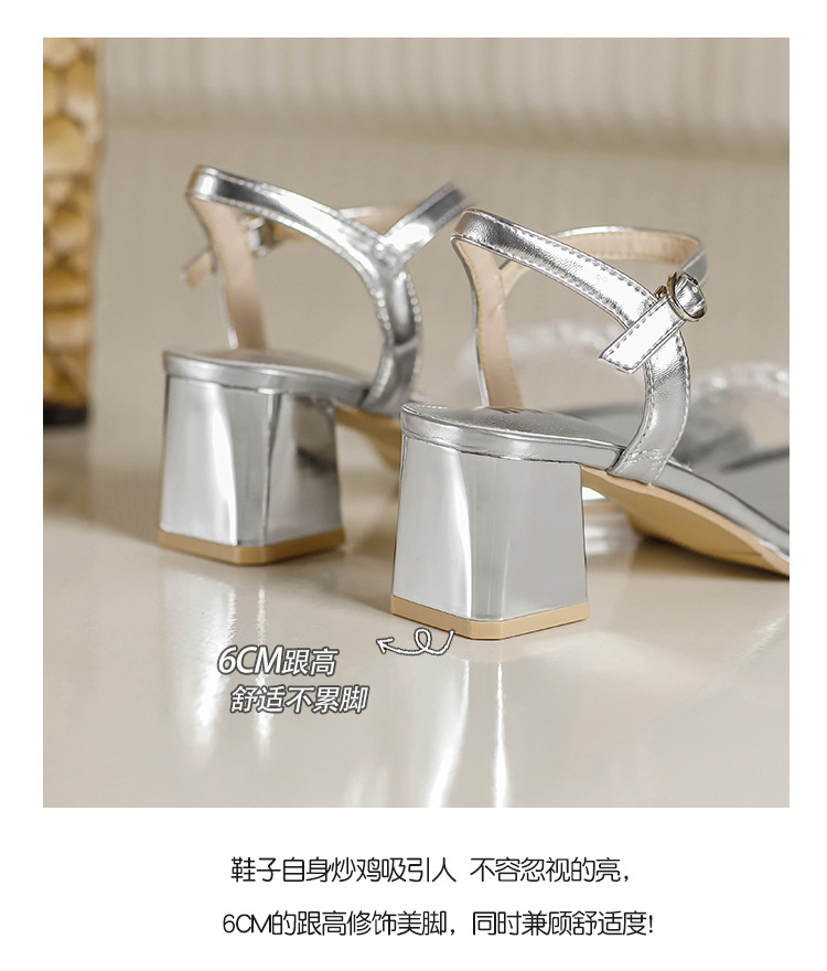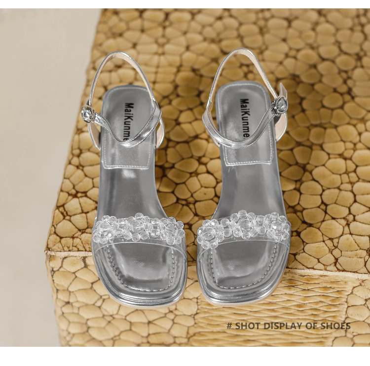여름 새 스타일 여성용 샌들, 똥과 두꺼운 실버 여성용 샌들