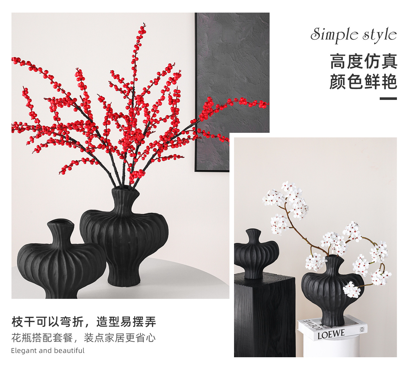 와비사비 스타일 도자기 꽃병 프렌치 라이트 럭셔리 고급 장식 꽃병 블랙 소형 거실 현관 꽃꽂이 장식품스토어 가기