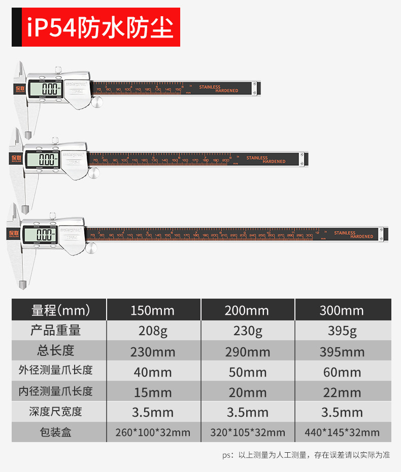 • IP54 방수 디지털 캘리퍼스(300mm)