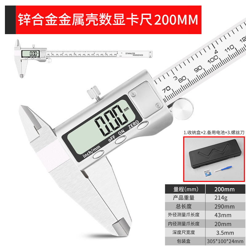 • 아연 합금 금속 쉘 디지털 캘리퍼스(200mm)